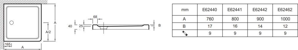 Акриловый поддон Jacob Delafon Flight 80x80 см E62441-00, диаметр отверстия 90 мм.