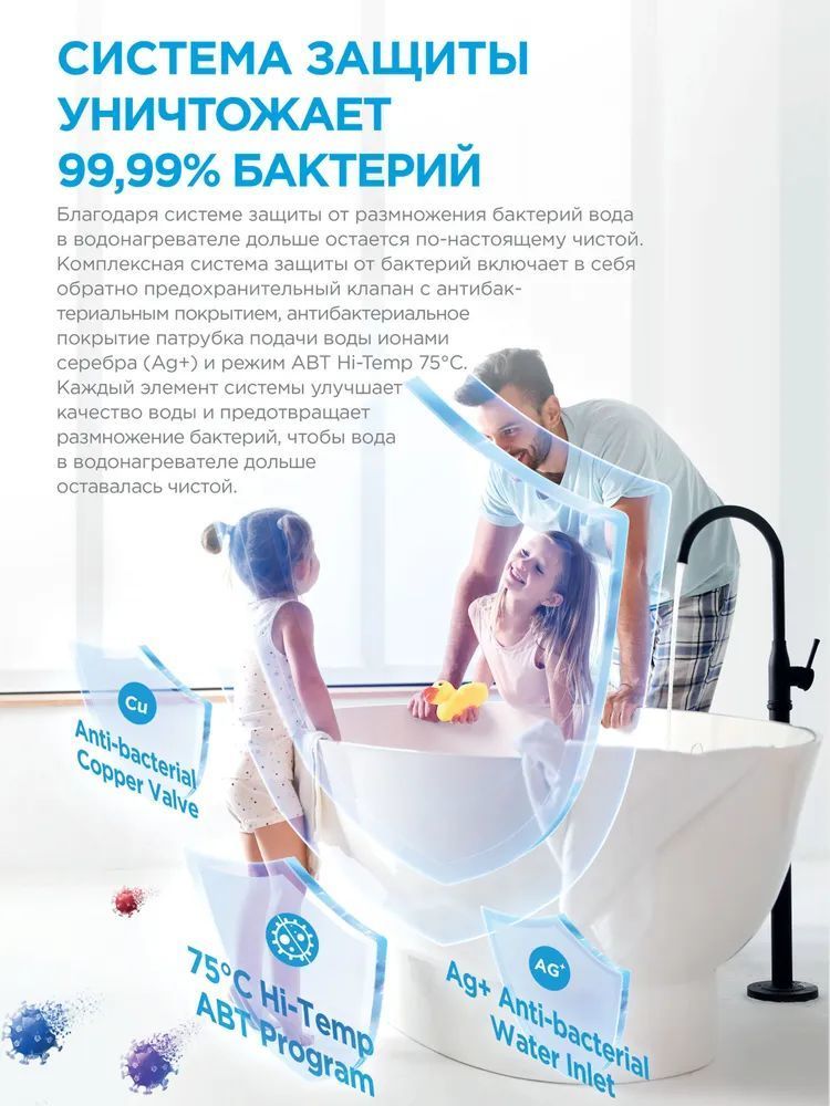 Водонагреватели Midea серии Salute Uno станут прекрасным решением при отсутствии горячей воды. Дизайн водонагревателей разработан с учетом последних трендов промышленного дизайна. Панель управления, для большего удобства, расположена на лицевой части корпуса. Внутренний резервуар выполнен из стали и дополнительно покрыт слоем высококачественной сапфировой эмали с добавлением ионов титана (Ti+), которая препятствует размножению бактерий и микроорганизмов внутри водонагревателя. Для дополнительной профилактики на панели управления предусмотрен режим AntiBact. Все это позволяет получать Вам чистую воду долгое время. За нагрев воды отвечает высокоэффективный нагревательный элемент мощность 1500 Вт, который также покрыт эмалью для дополнительной защиты от коррозии и образования накипи. Надежность и высокое качество всех элементов позволяет предоставить гарантию на внутренний резервуар 7 лет, а Вам получить надежный прибор, который прослужит долгие годы. Длина кабеля - 1,5 метра.