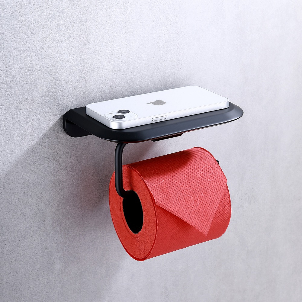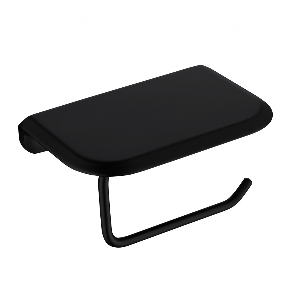 Держатель для туалетной бумаги Abber Nord AA1530B с полкой для телефона, материал нержавеющая сталь, цвет чёрный матовый.