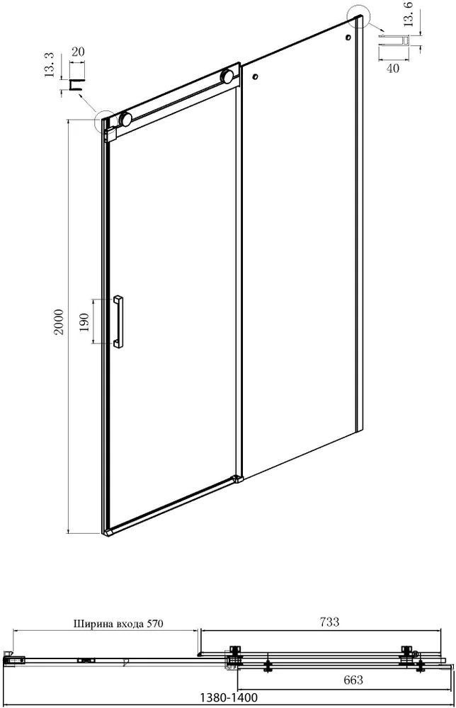 Душевая дверь Ambassador Benefit, размер 1400х2000 мм, профиль хром, стекло прозрачное 8 мм. Габариты регулировки (1380x1400)x2000 мм, ширина входа 570 мм. Поддон приобретается отдельно.