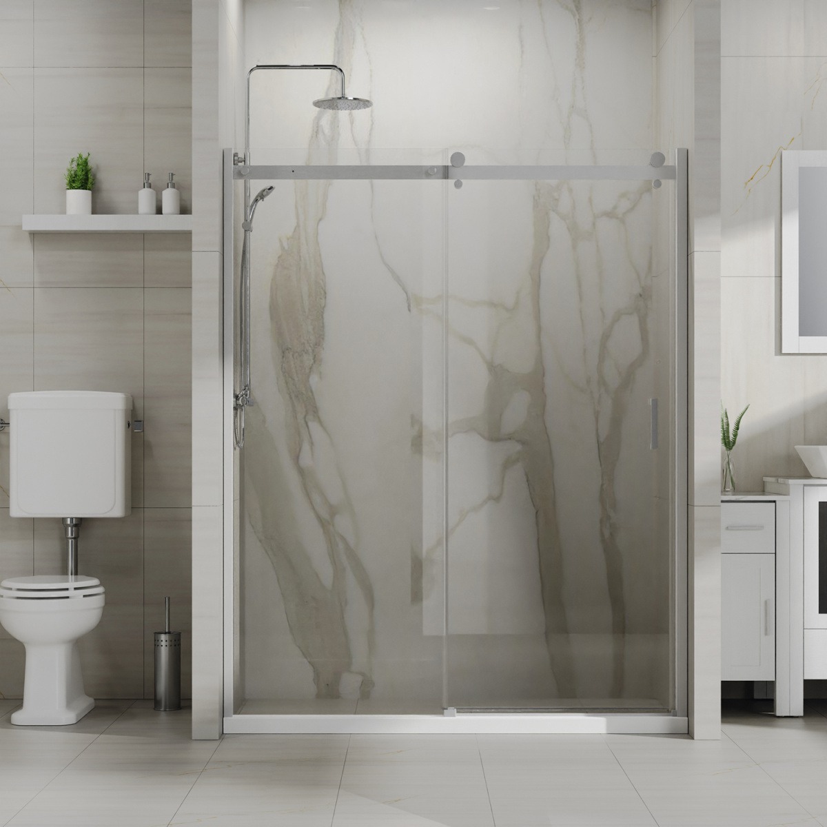 - Усиленная дверь в нишу, с одной раздвижной дверью, на усиленных дизайнерских роликах с нержавеющими подшипниками.
