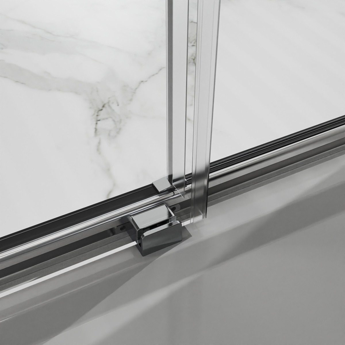- Дверь в нишу Раздвижная, с универсальной (L/R) откатной дверью, на двойных роликах с нержавеющими подшипниками. Ручки выполнены из латуни в цвет профиля.