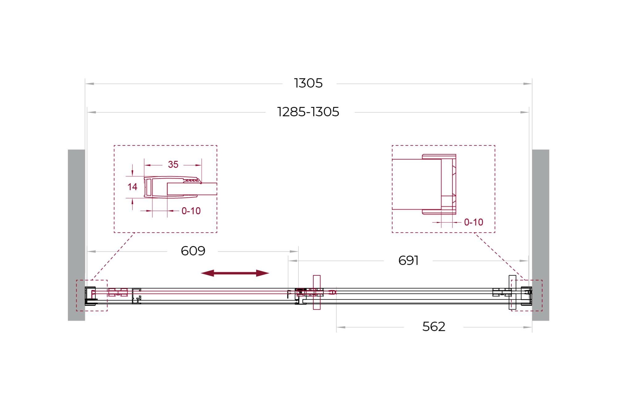 - Система подвески: Двойные навесные ролики из нержавеющей стали с держателем стекла обеспечивают плавное движение створки, ее устойчивость и отсутствие перекосов.