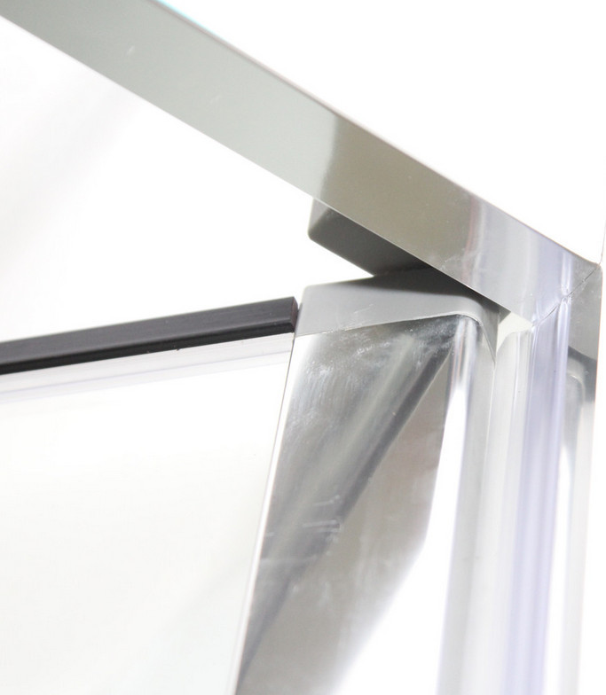 - Безопасное закаленное стекло, 5 мм. Разбить довольно сложно. Если разбивается, то рассыпается в крошку с неострыми краями - пораниться практически невозможно.Хромированный алюминиевый профиль Cromato.