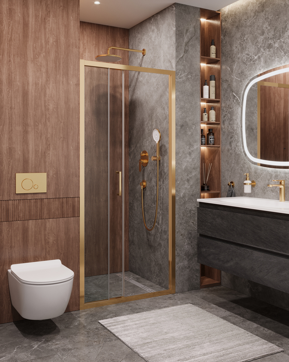 Душевая дверь Cezares 100 см MOLVENO-BF-3-100-C-BORO-IV, брашированное золото/прозрачное