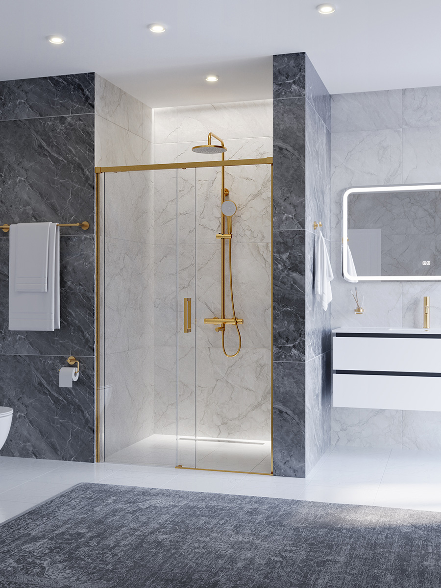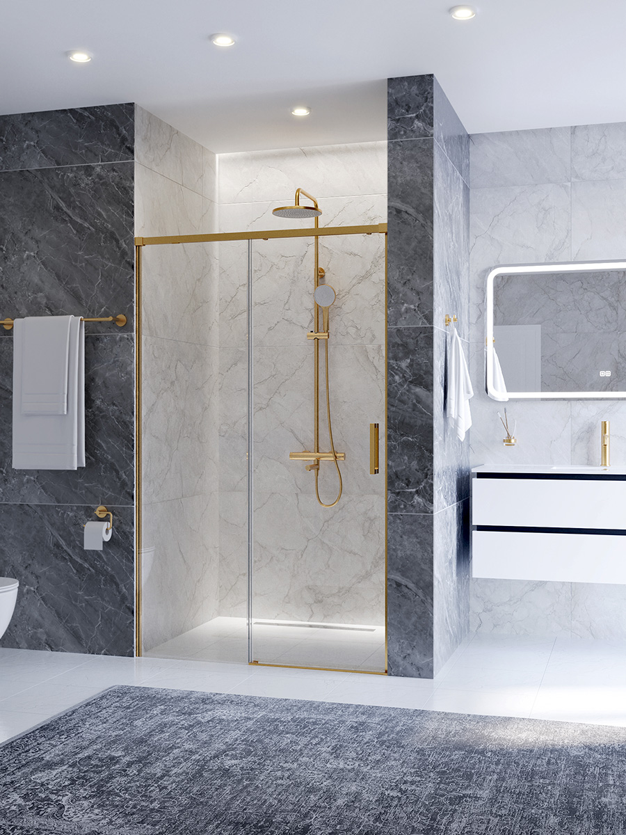 Душевая дверь Cezares 120 см PLANE-BF-1-120-C-BORO, брашированное золото/прозрачное