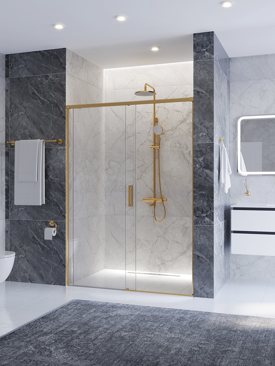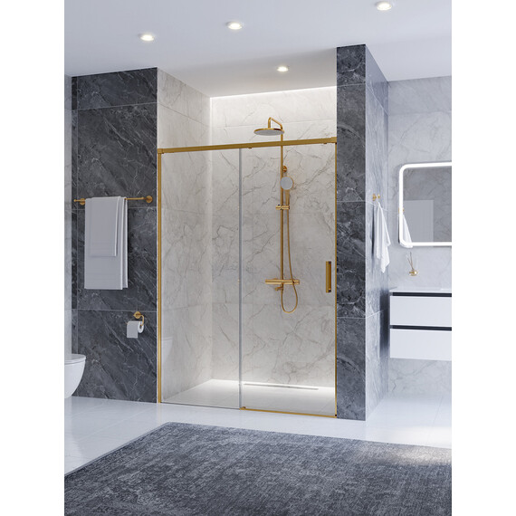 Душевая дверь Cezares 140 см PLANE-BF-1-140-C-BORO, брашированное золото/прозрачное