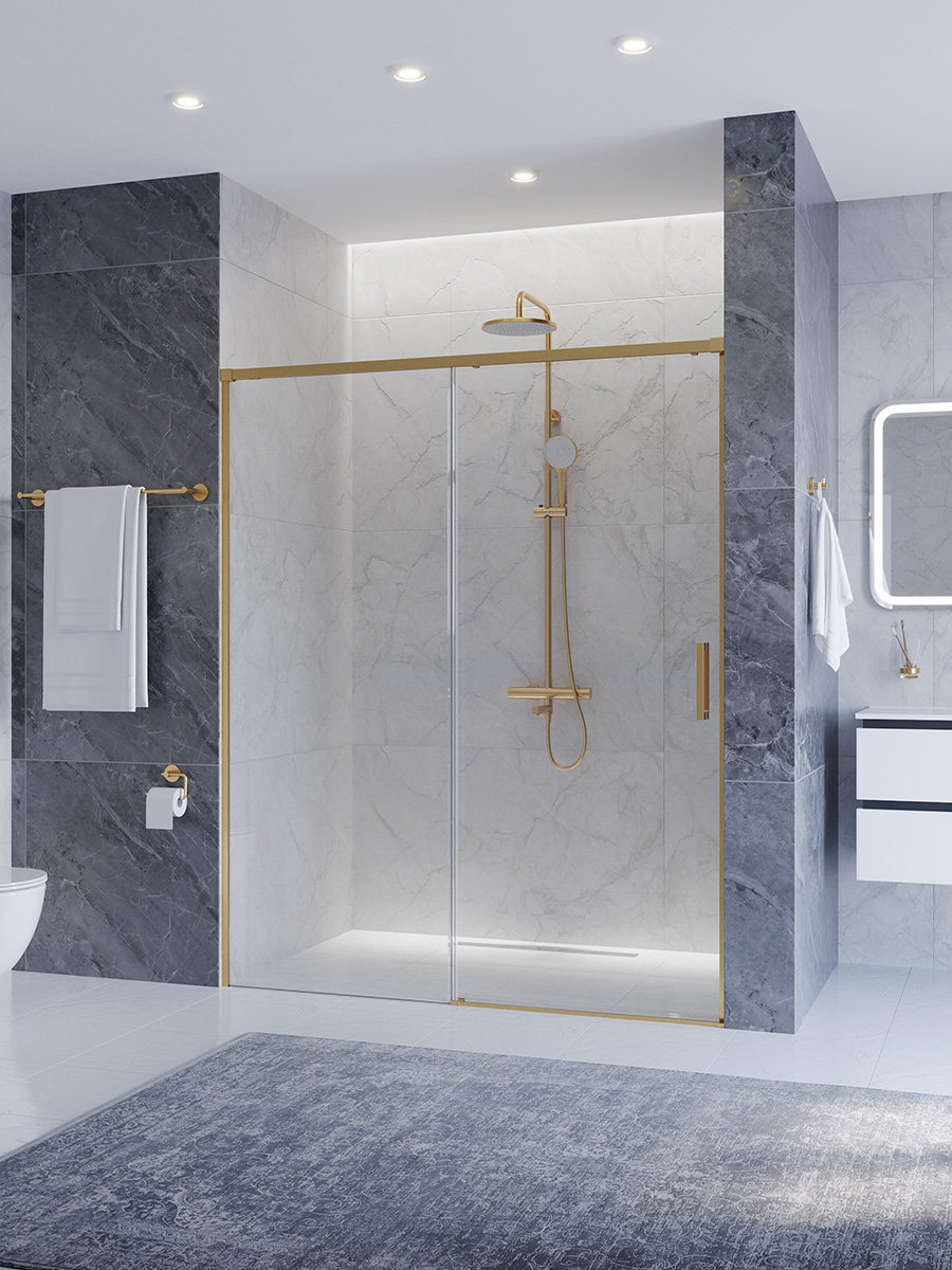 Душевая дверь Cezares 160 см PLANE-BF-1-160-C-BORO, брашированное золото/прозрачное