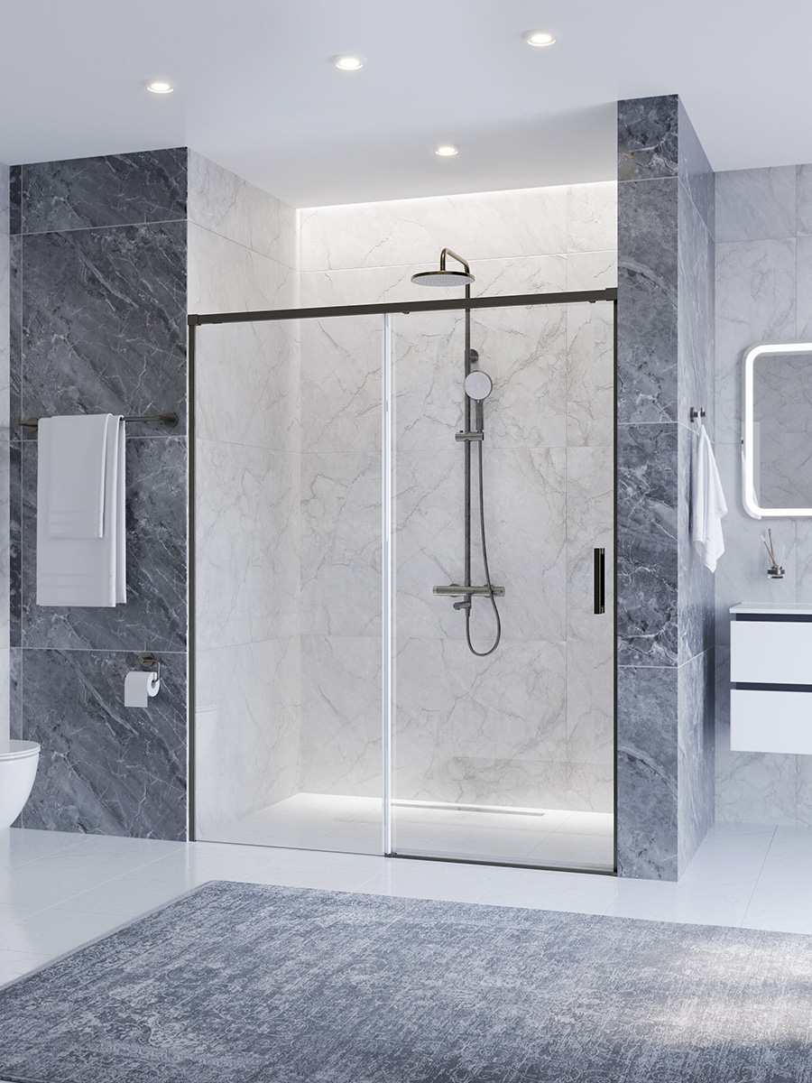 Душевая дверь Cezares 160 см PLANE-BF-1-160-C-GM, оружейная сталь/прозрачное
