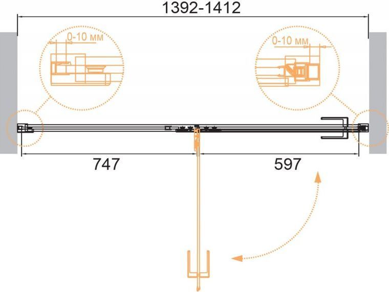 - Габариты с диапазоном регулировок: (1392-1412)x1968 мм