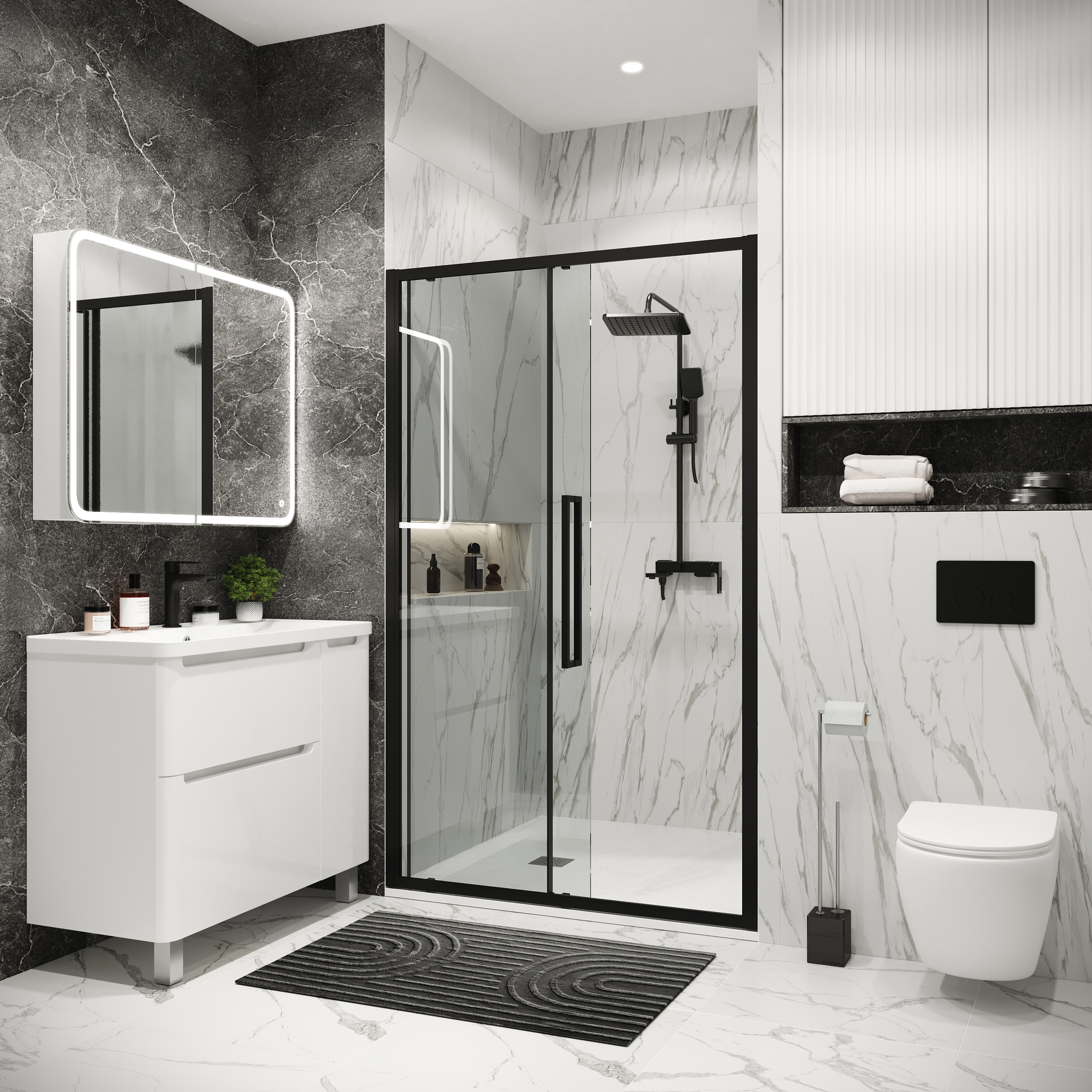 Душевая дверь Grossman Cosmo 140 см 100.K33.02.140.21.00, чёрный/прозрачное