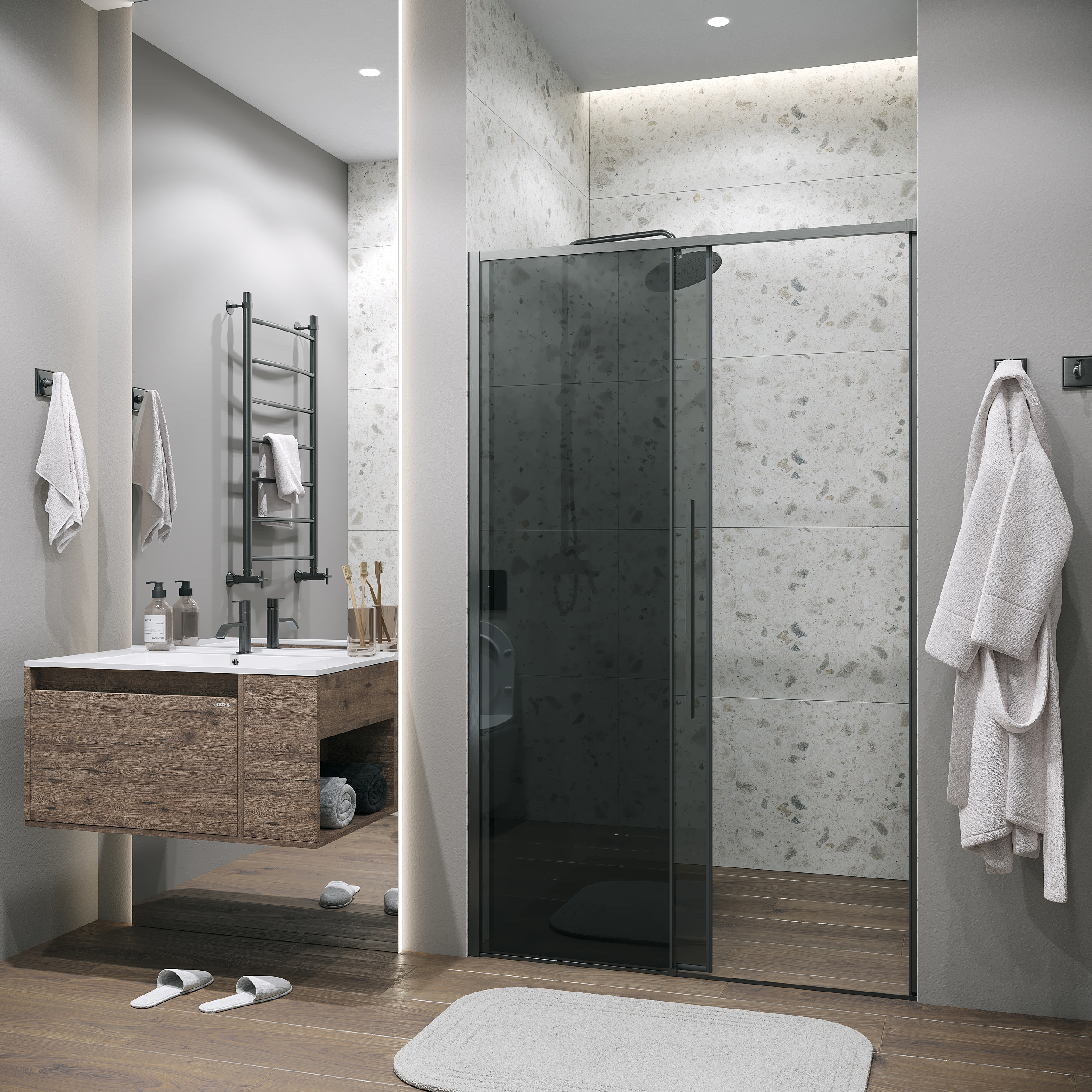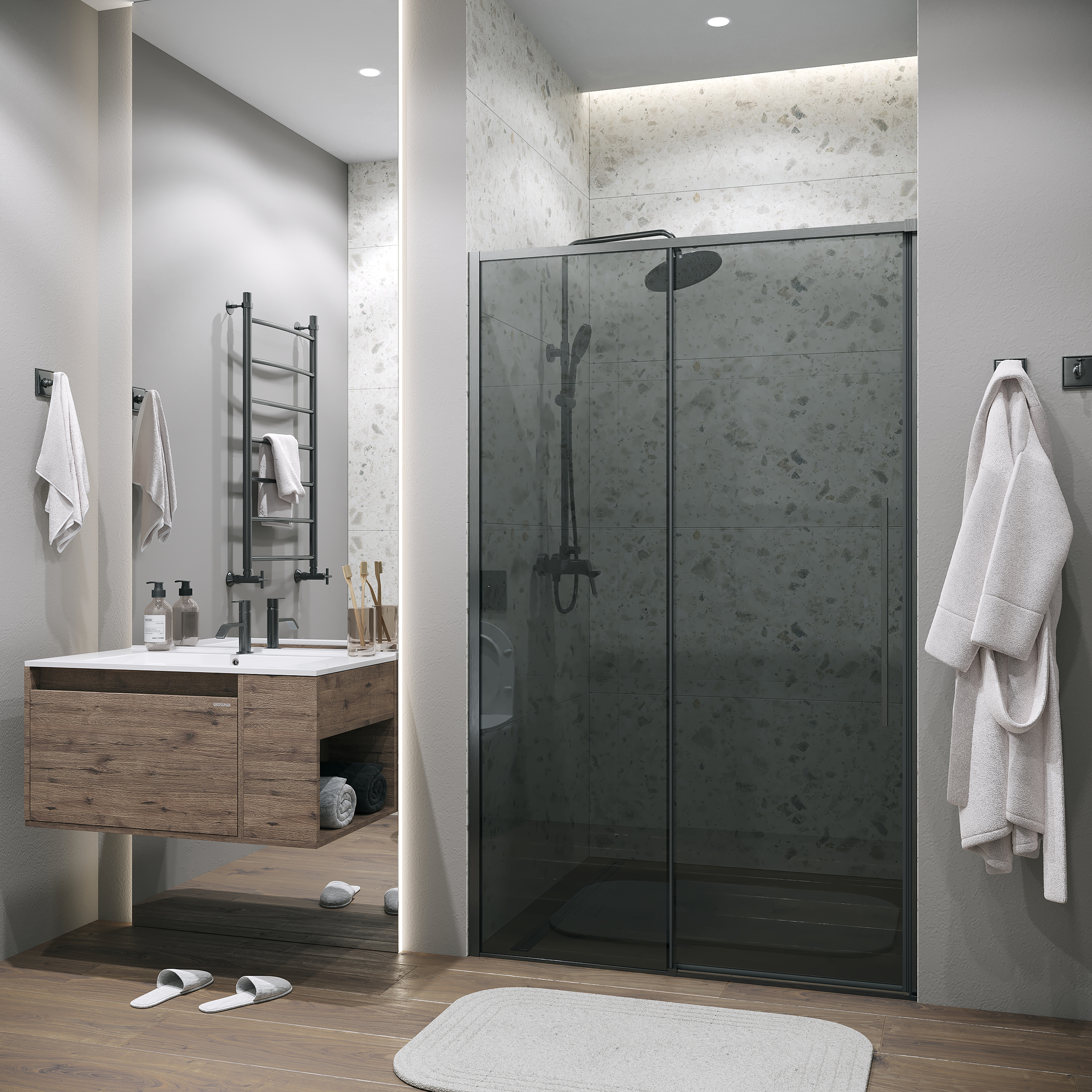 Душевая дверь Grossman Galaxy 100 см 100.K33.01.100.42.10, оружейная сталь/тонированное