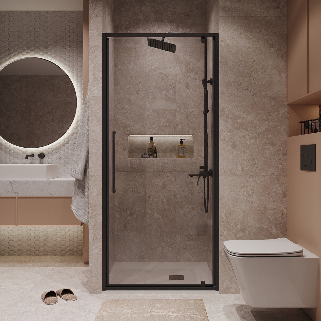 Душевая дверь Niagara Nova NG-85-10AB 1000х1950 мм, профиль – чёрный, стекло – прозрачное, 6 мм, ширина входа 84 мм. Габариты регулировки (985-1015)x1950 мм. Душевой поддон приобретается отдельно.