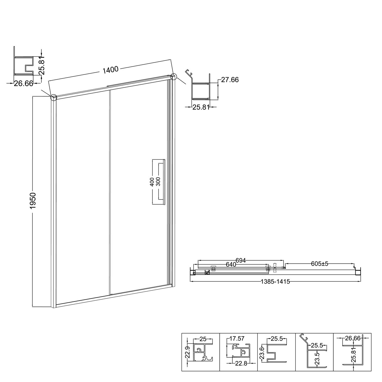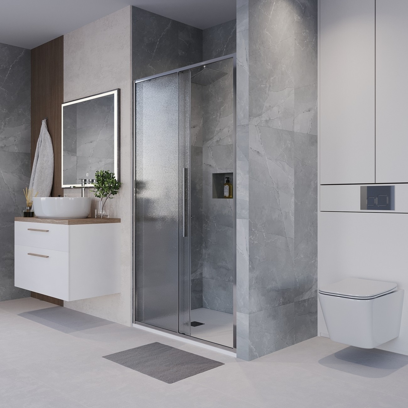 Душевая дверь Niagara Nova NG-65-14CH, размер 1400xx1950 мм, профиль хром, стекло шиншилла. Габариты регулировки (1385-1415)x1950 мм, вход 605 мм.