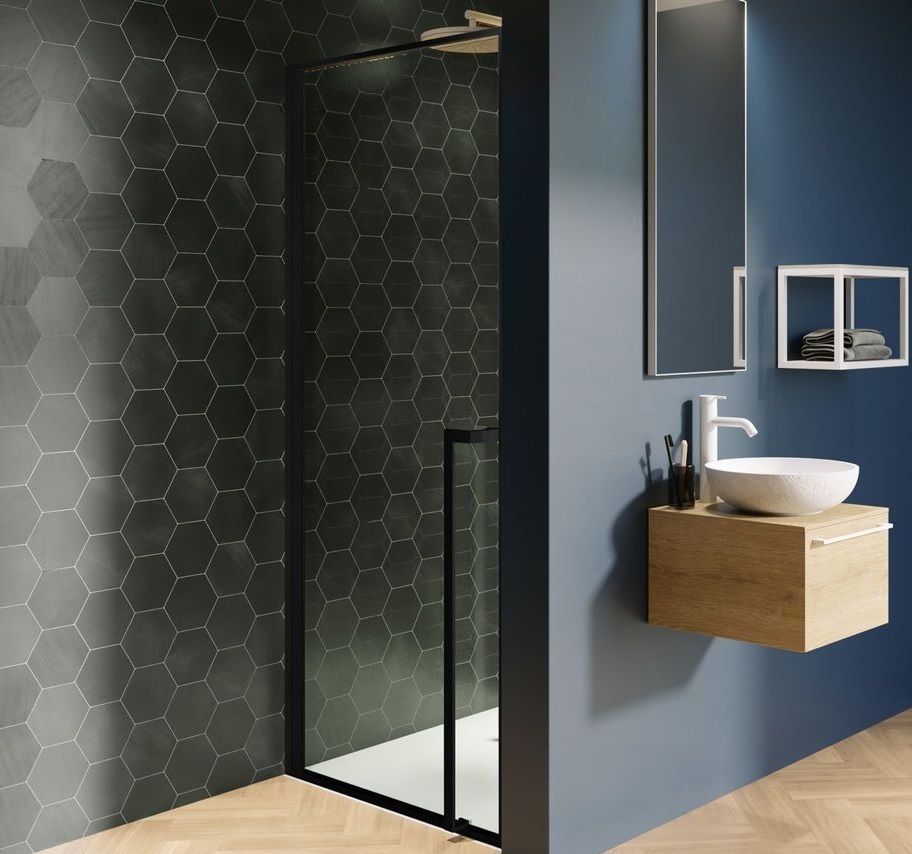 Душевая дверь Riho Lucid GD101 800x2000 мм, цвет стекла - прозрачное 6 мм, цвет профиля - черный, поддон приобретается отдельно.