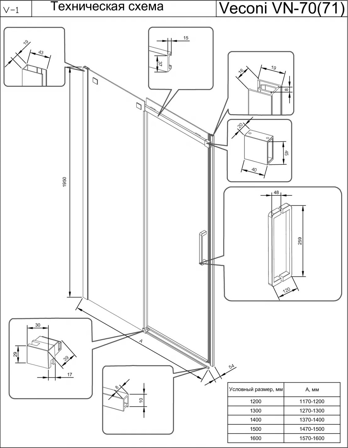 Описание Душевая дверь Veconi VN70G-130-01-C4