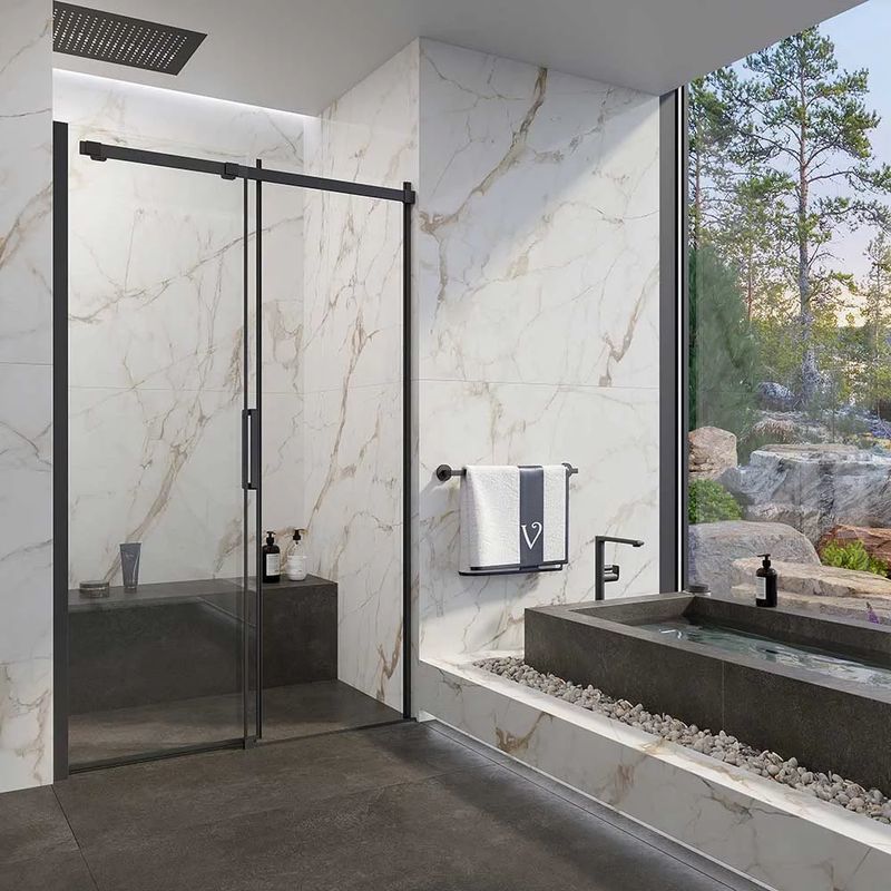 Душевая дверь Veconi Vianno VN-70, размер 140х195 см, профиль чёрный, стекло прозрачное, вход 588 мм. Габариты регулировки (1370-1400)х1950 мм.