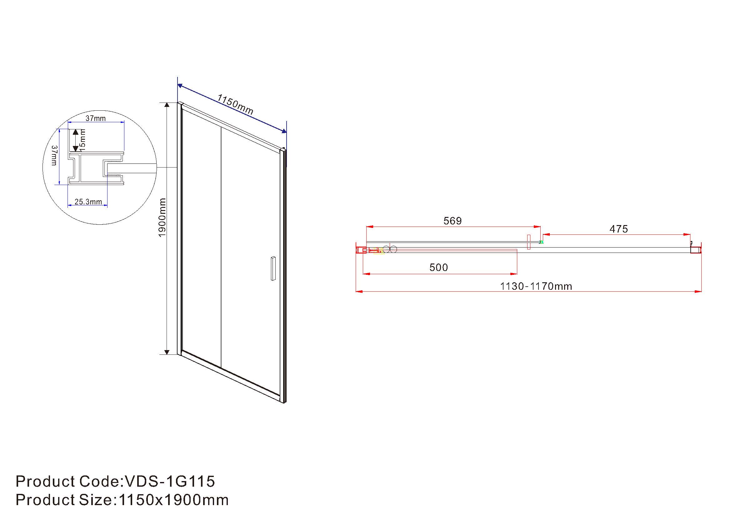 Душевая дверь Vincea Garda VDS-1G115CLG 1150х1900 мм, стекло - прозрачное 6 мм, профиль - золото брашированное, ширина входа - 475 мм, габариты с диапазоном регулировок: 1130-1170 мм, поддон приобретается отдельно.
