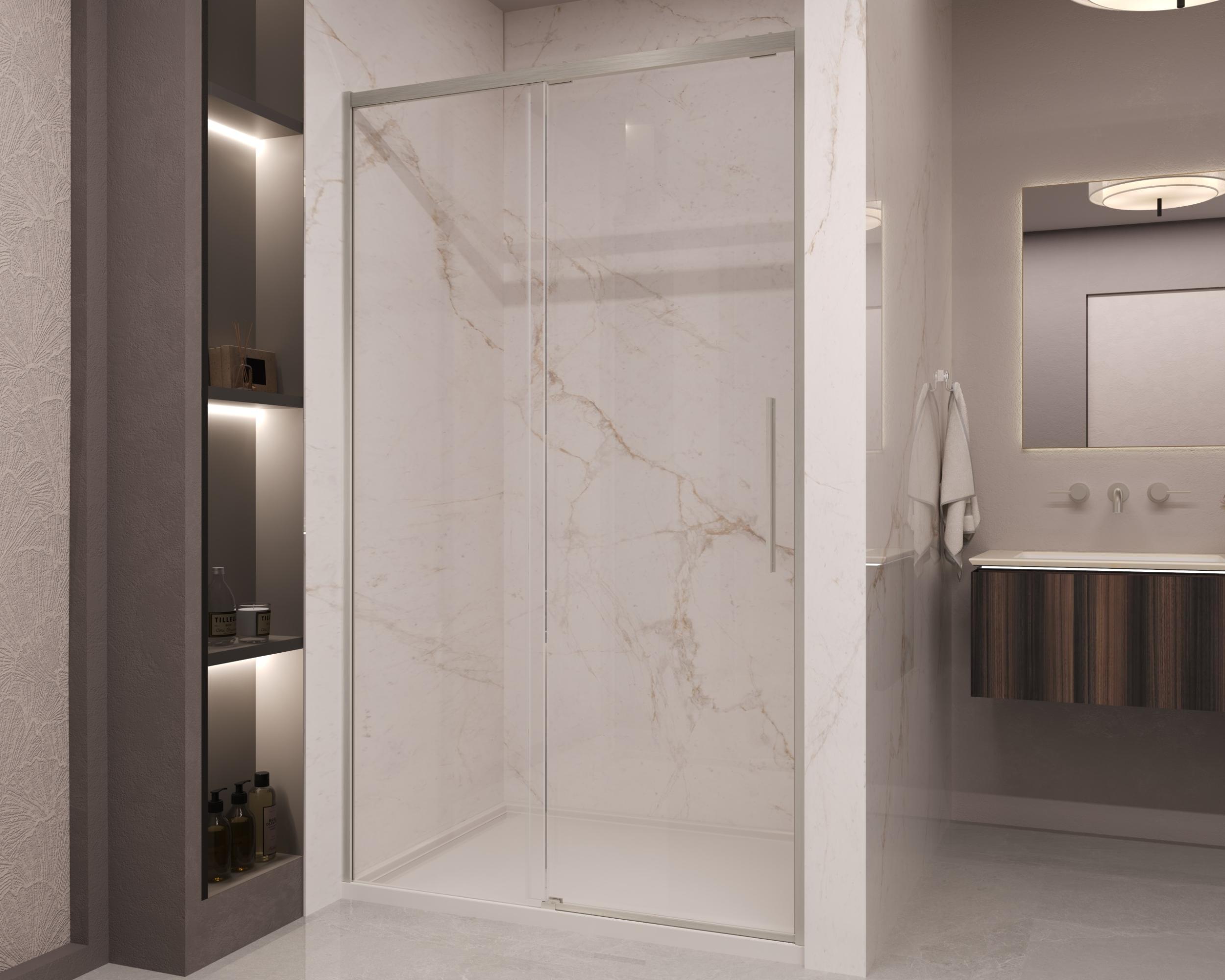 Душевая дверь Vincea Stella VDS-1ST120CLBN 1200х2000 мм, стекло - прозрачное 8 мм с покрытием Easy Clean, профиль - брашированный никель, ширина входа - 470-480 мм, габариты с диапазоном регулировок: 1180-1200 мм. Поддон приобретается отдельно.
