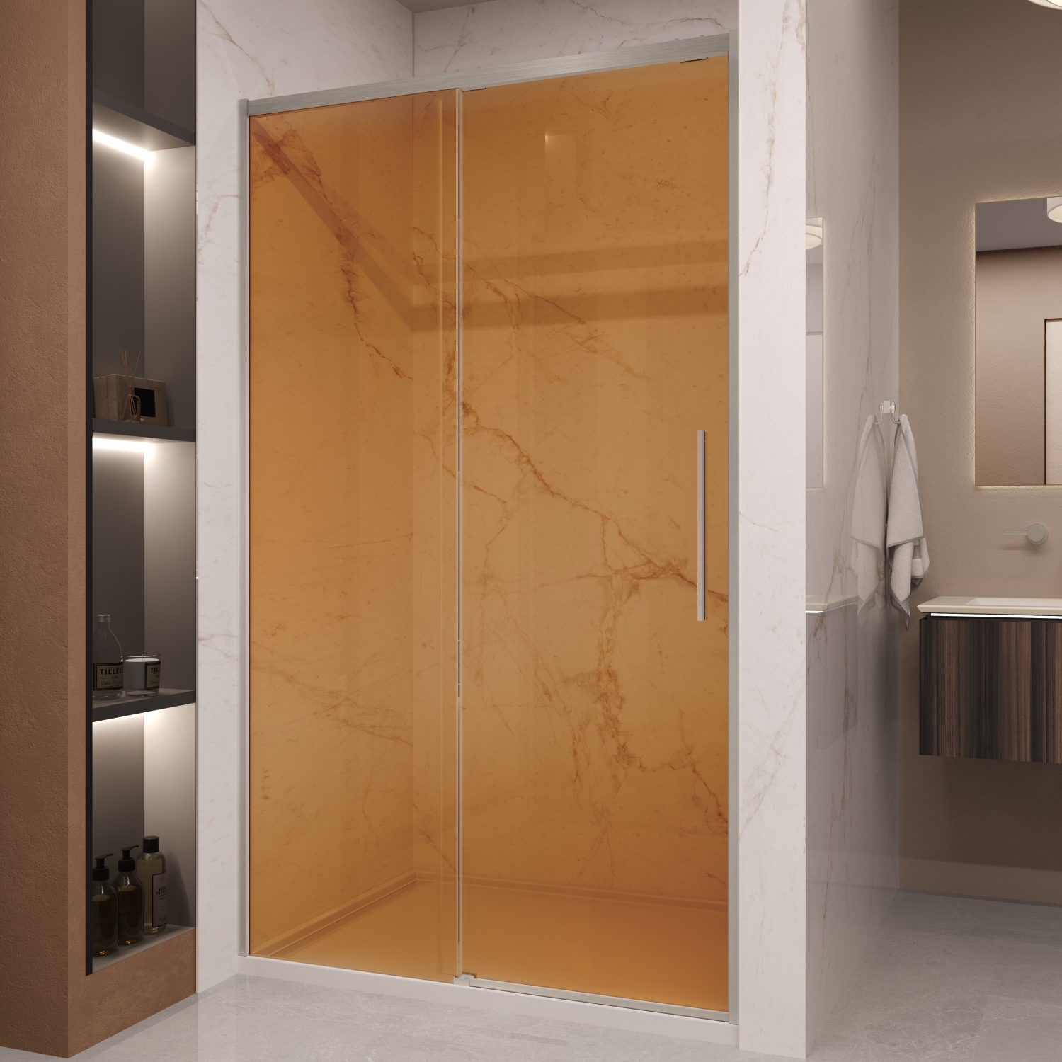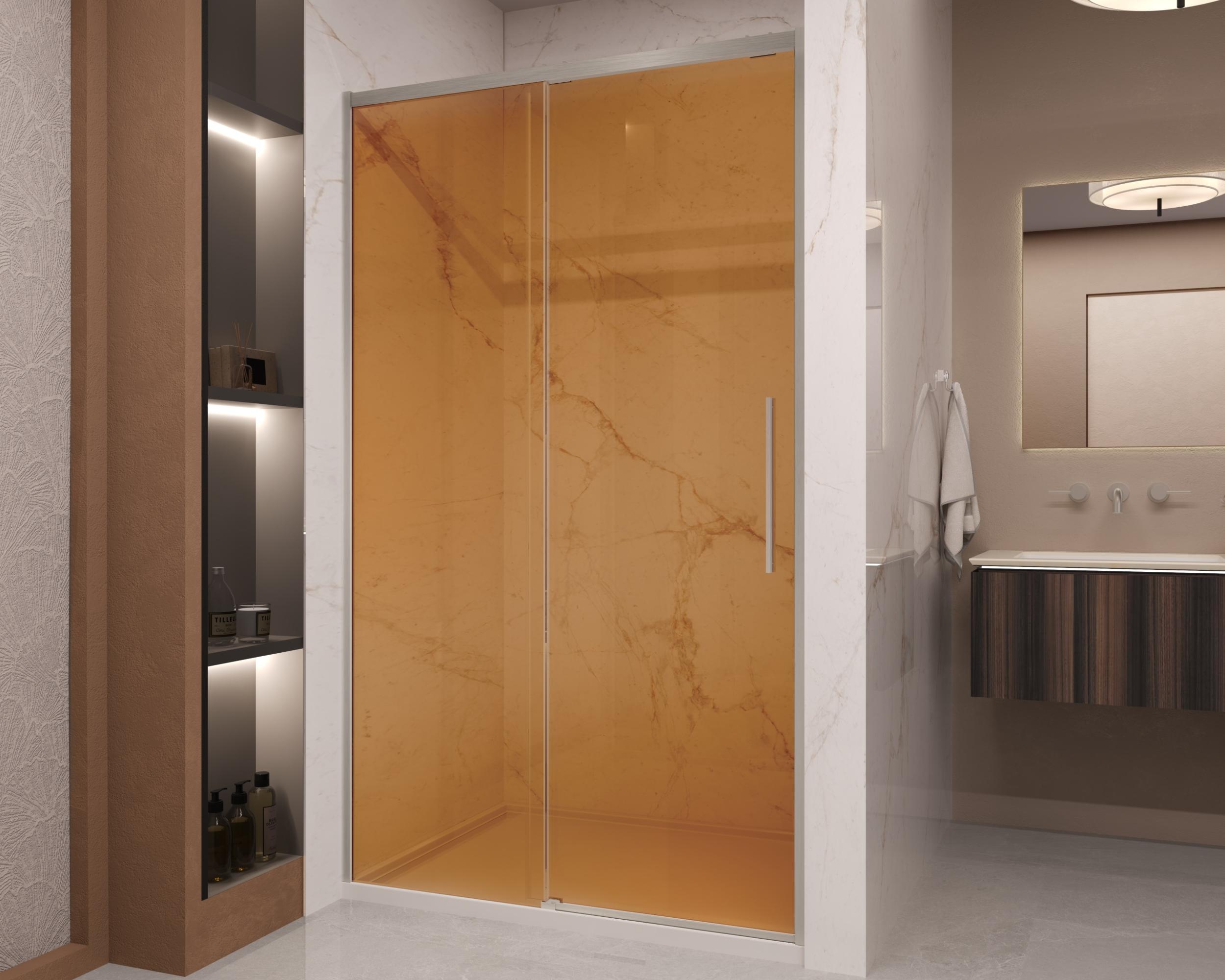 Душевая дверь Vincea Stella VDS-1ST120GSBN 1200х2000 мм, стекло - янтарь 8 мм с покрытием Easy Clean, профиль - брашированный никель, ширина входа - 470-480 мм, габариты с диапазоном регулировок: 1180-1200 мм. Поддон приобретается отдельно.