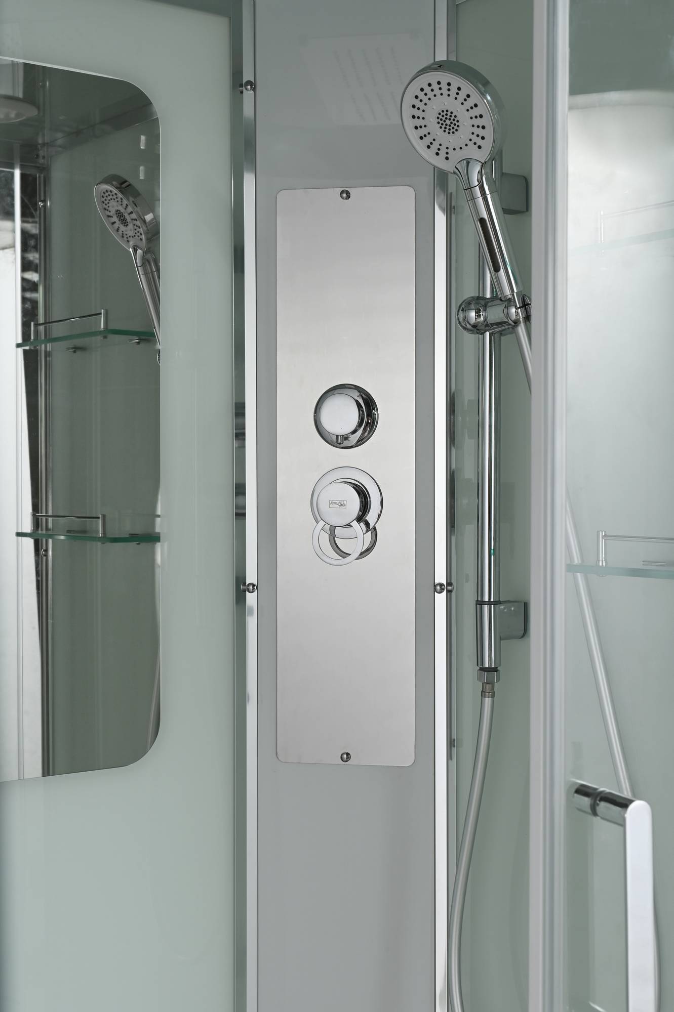Стильная душевая кабина AvaCan сочетает в себе высокую функциональность, практичность и надежность. При изготовлении применяется безопасное закаленное стекло, надежно фиксируемое алюминиевым профилем. Профиль сделан из алюминия повышенной прочности. Сборка без силикона (увеличивает срок службы, защищает от протечек), внутренняя сборка (облегчает установку и ревизию; позволяет установить в ограниченном пространстве и обойтись без демонтажа других сантехнических приборов), смеситель резьбовой (без хомутов). Двойные металлические ролики дверей (распределение нагрузки на два ролика, увеличивают срок службы). Душевая штанга(позволяет регулировать по высоте ручную лейку), ручная арома-лейка с витамином С (картридж в комплекте,есть возможность замены или удаления картриджа), полочки(из стекла, с ограничителем), сифон с гидрозатвором.