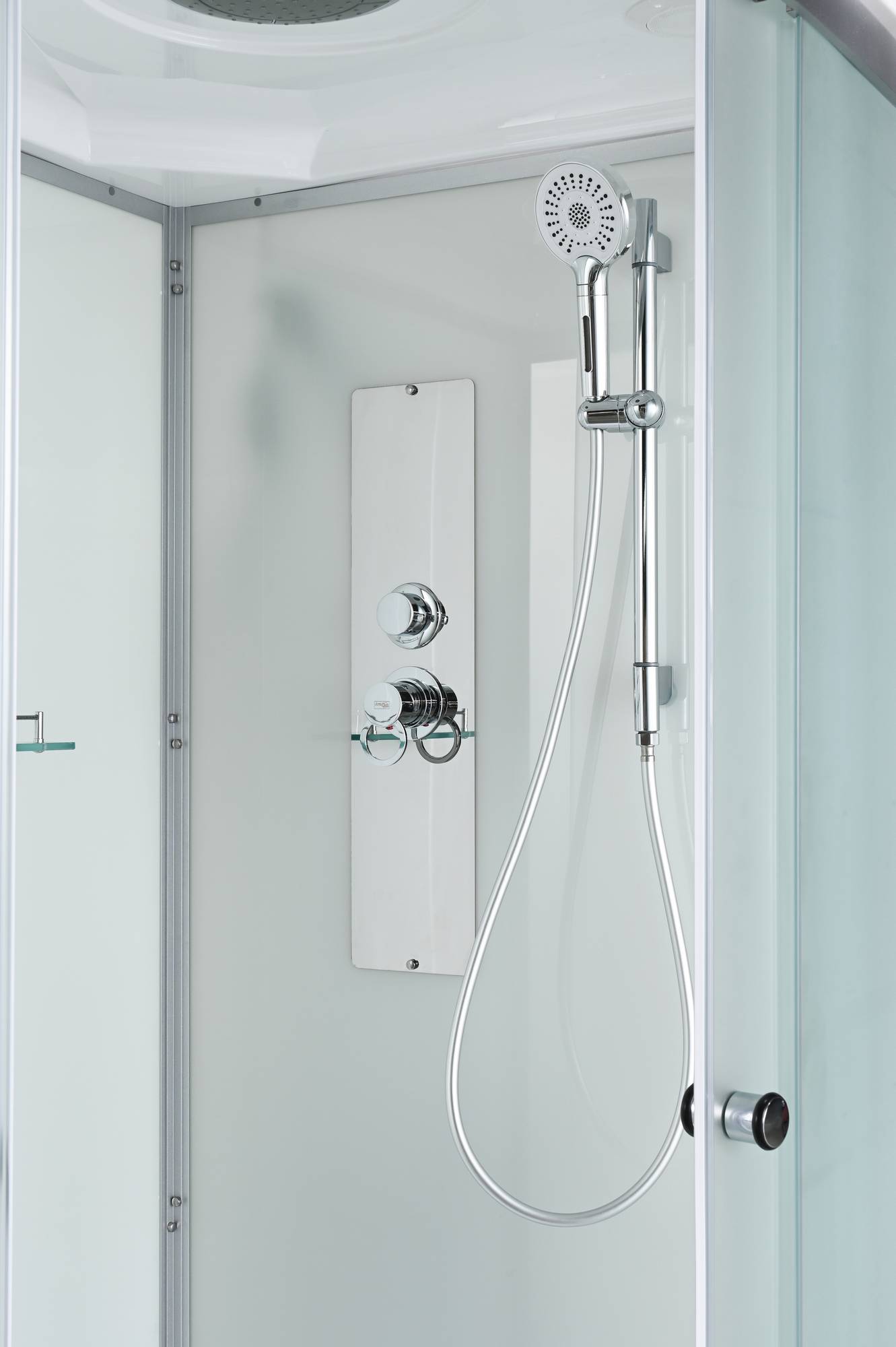Стильная душевая кабина AvaCan D 2010 сочетает в себе высокую функциональность, практичность и надежность. При изготовлении применяется безопасное закаленное стекло толщиной 4 мм (матовое), надежно фиксируемое алюминиевым профилем. Сборка без силикона (увеличивает срок службы), внутренняя сборка (облегчает установку и ревизию, позволяет установить душевую кабину в ограниченном пространстве),смеситель резьбовой (без хомутов), съемный экран поддона (позволяет осуществлять ревизию сифона), цвет профиля матовый хром. Двойные металлические ролики дверей (увеличивают срок службы).В комплекте : душевая штанга, полочка, тропический (верхний) душ, арома-лейка с витамином С (картридж съемный).