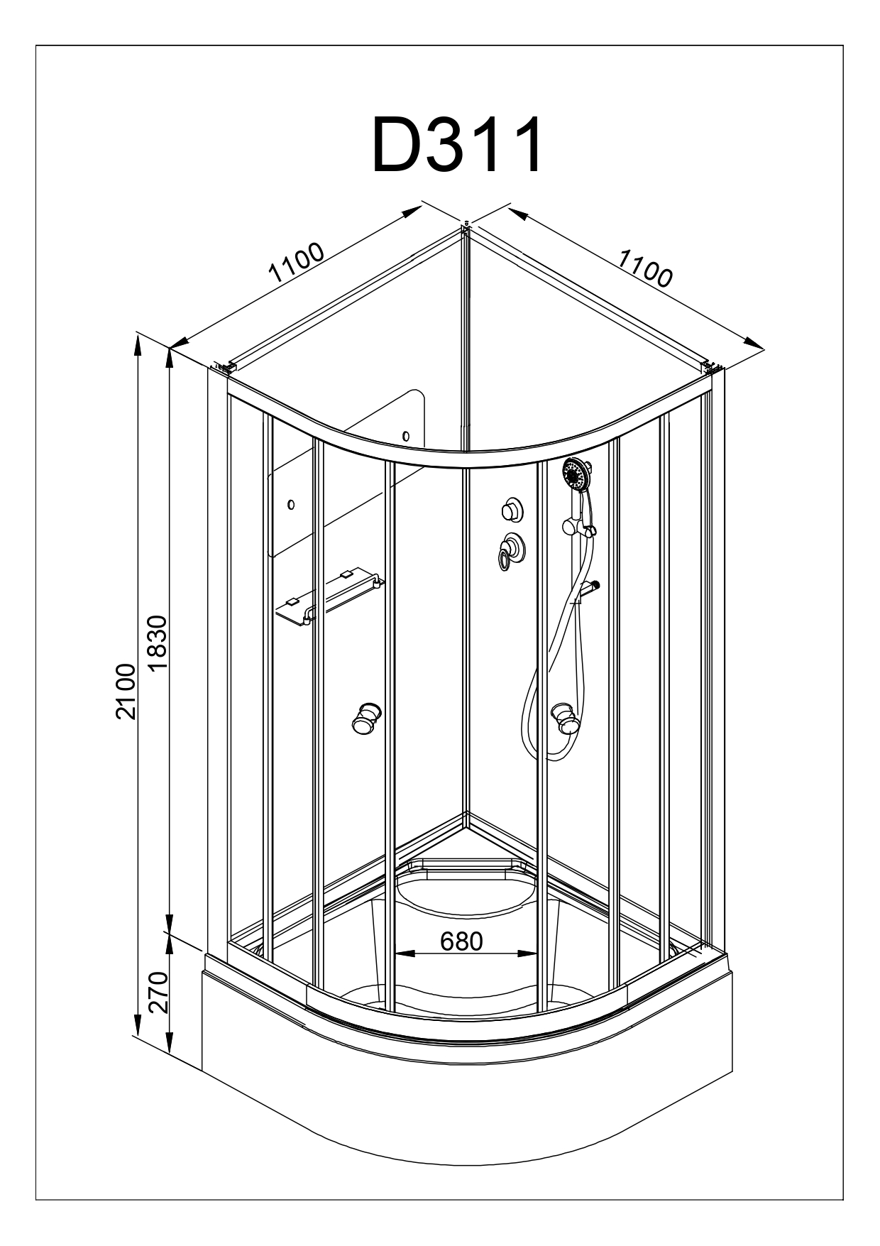 Стильная душевая кабина с внутренней сборкой AvaCan D311 сочетает в себе высокую функциональность, практичность и надежность. Для изготовления применяют безопасное закаленное стекло толщиной 4 мм, надежно фиксируемое алюминиевым профилем. Цвет профиля хром. В комплекте сифон, полочка, зеркало, смеситель, переключатель режимов, передний съемный экран, душевой гарнитур, , вентиляция
