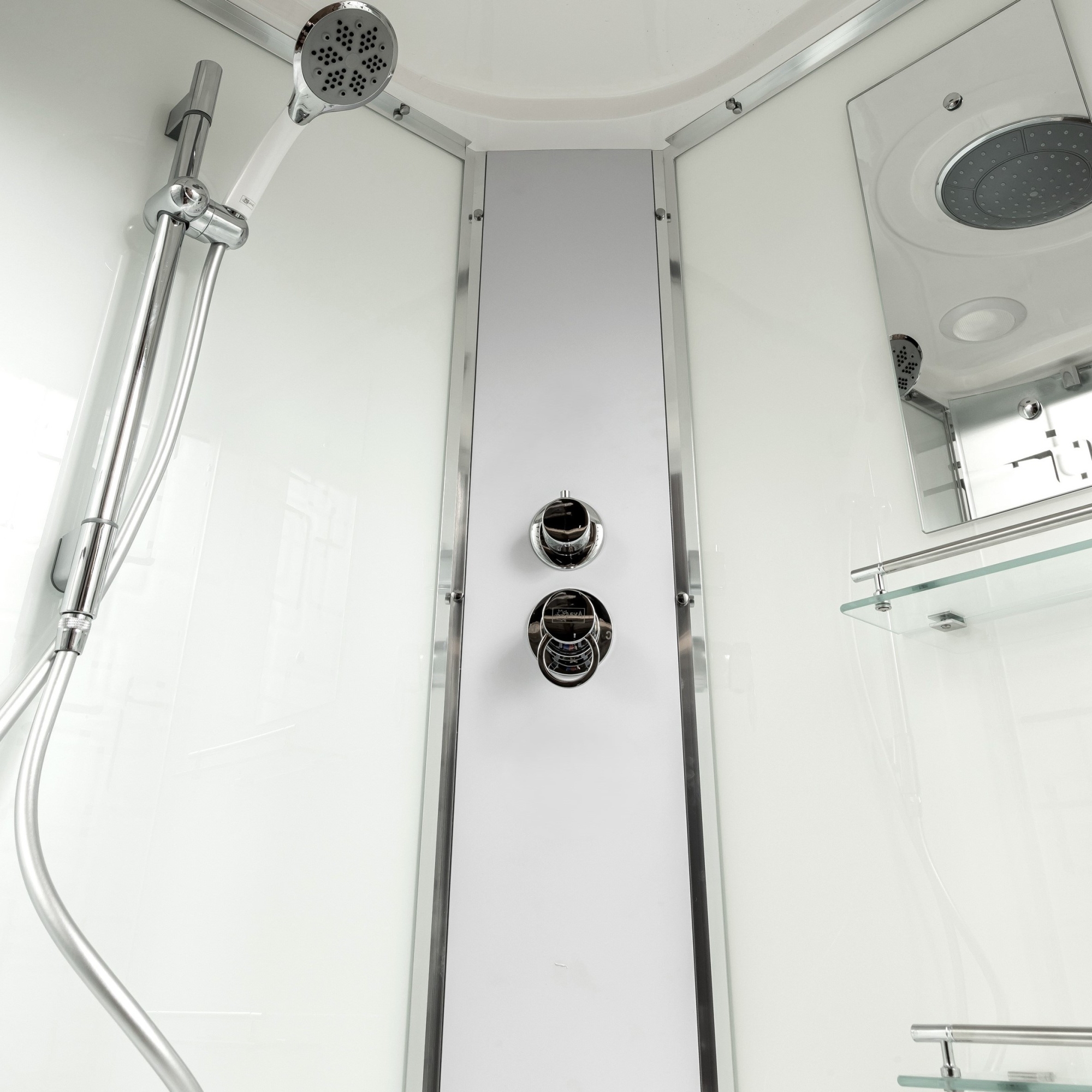 Стильная душевая кабина с внутренней сборкойAvaCan EM 5012 R сочетает в себе высокую функциональность, практичность и надежность. Для изготовления применяют безопасное закаленное стекло толщиной 5 мм, надежно фиксируемое алюминиевым профилем. Цвет профиля хром. В комплекте зеркало, донный клапан (клик-клак), переключатель режимов, смеситель, тропический (верхний) душ, полочки, сифон.