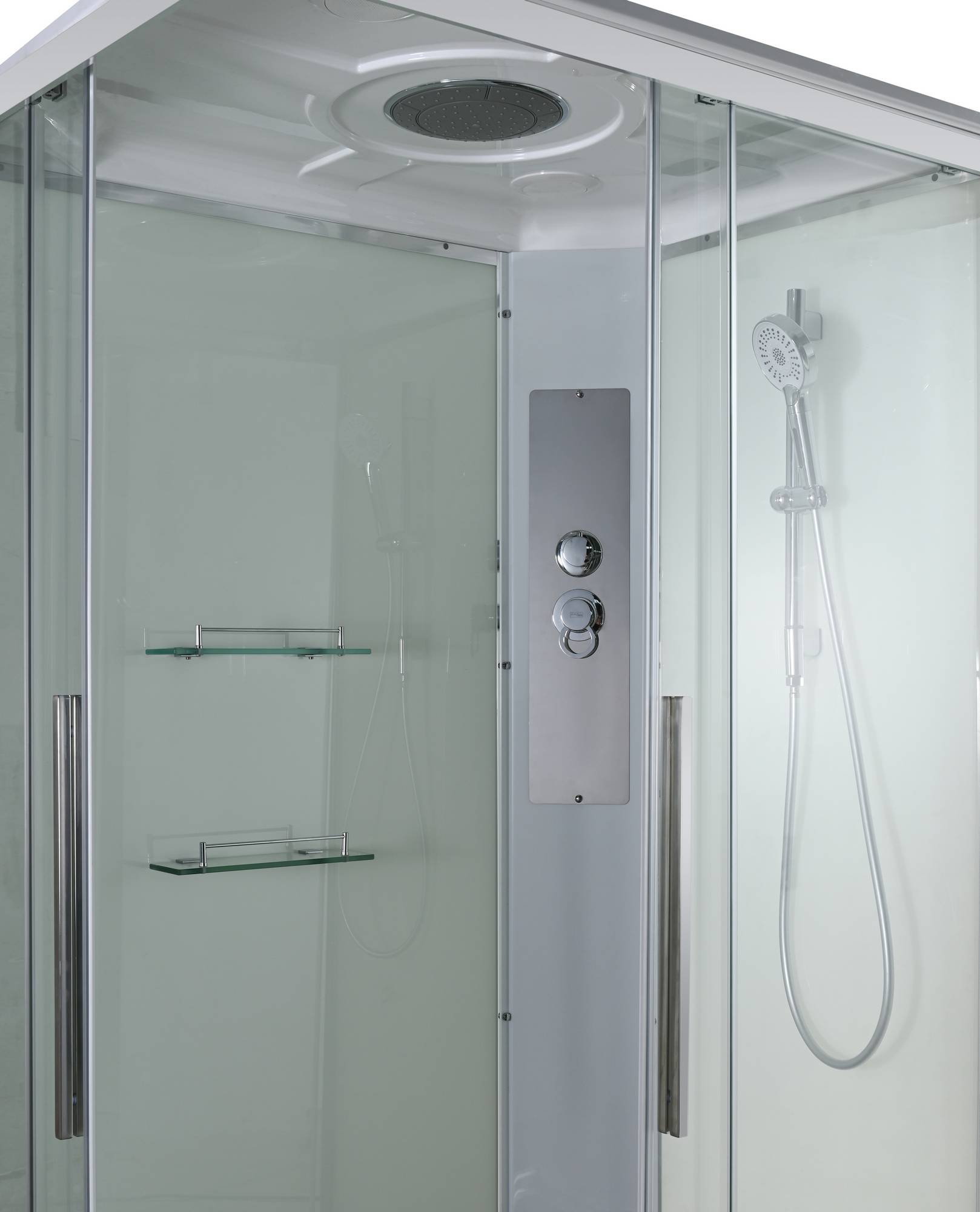 Стильная душевая кабина AvaCan сочетает в себе высокую функциональность, практичность и надежность. При изготовлении применяется безопасное закаленное стекло, надежно фиксируемое алюминиевым профилем. Профиль сделан из алюминия повышенной прочности. Сборка без силикона (увеличивает срок службы, защищает от протечек), внутренняя сборка (облегчает установку и ревизию; позволяет установить в ограниченном пространстве и обойтись без демонтажа других сантехнических приборов), смеситель резьбовой (без хомутов). Съемный экран поддона (позволяет осуществлять подключение и ревизию сифона).Двойные металлические ролики дверей (распределение нагрузки на два ролика, увеличивают срок службы). Душевая штанга(позволяет регулировать по высоте ручную лейку), ручная арома-лейка с витамином С (картридж в комплекте,есть возможность замены или удаления картриджа), полочки(из стекла, с ограничителем), сифон с гидрозатвором.