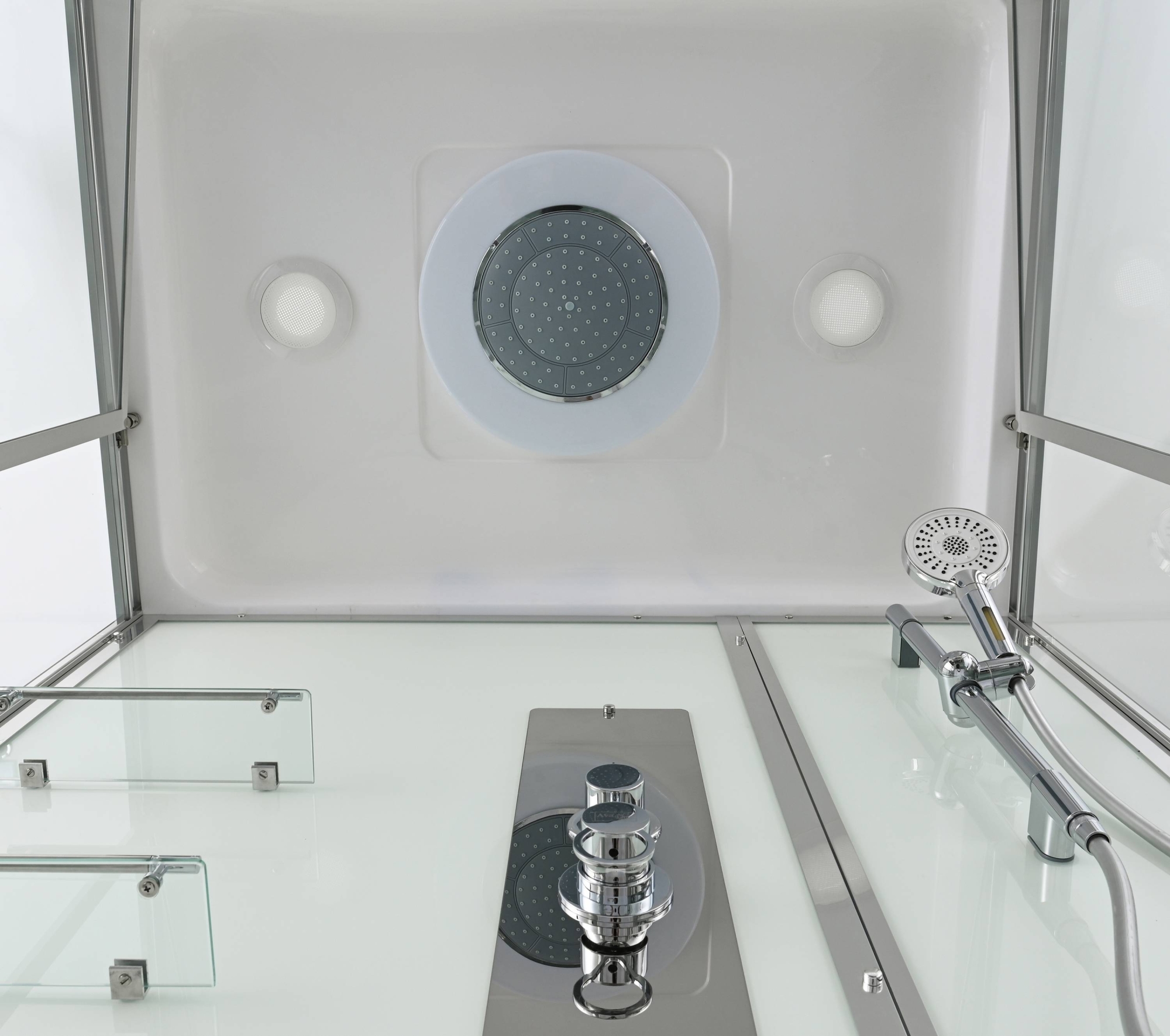 Стильная душевая кабина AvaCan сочетает в себе высокую функциональность, практичность и надежность. При изготовлении применяется безопасное закаленное стекло, надежно фиксируемое алюминиевым профилем. Профиль сделан из алюминия повышенной прочности. Сборка без силикона (увеличивает срок службы, защищает от протечек), внутренняя сборка (облегчает установку и ревизию; позволяет установить в ограниченном пространстве и обойтись без демонтажа других сантехнических приборов), смеситель резьбовой (без хомутов). Съемный экран поддона (позволяет осуществлять подключение и ревизию сифона).Двойные металлические ролики дверей (распределение нагрузки на два ролика, увеличивают срок службы). Душевая штанга(позволяет регулировать по высоте ручную лейку), ручная арома-лейка с витамином С (картридж в комплекте,есть возможность замены или удаления картриджа), полочки(из стекла, с ограничителем), сифон с гидрозатвором.