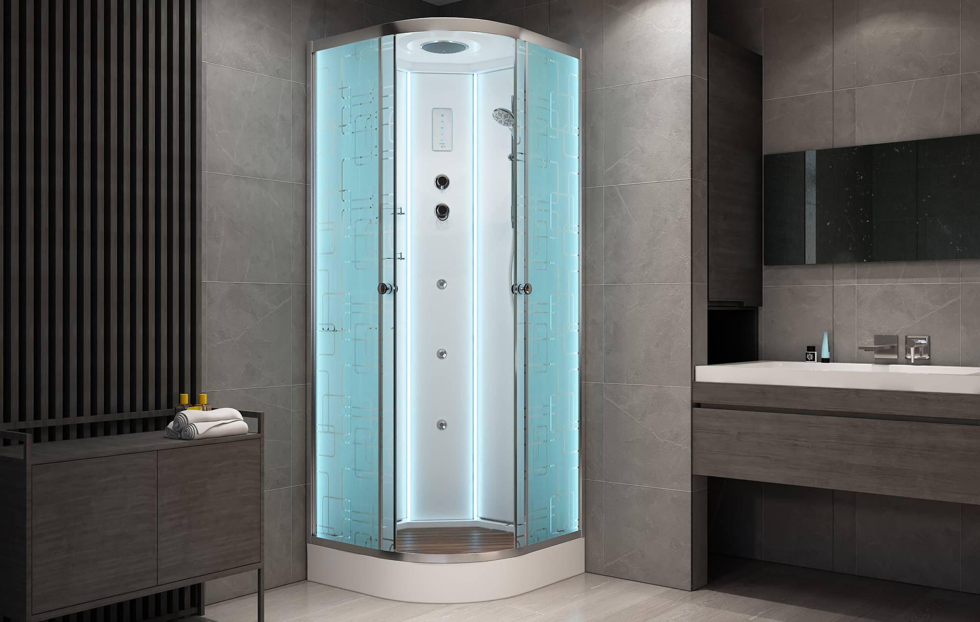 Душевая кабина Avacan 90x90 см EM1590LED, хром/узор (безсиликоновая сборка)