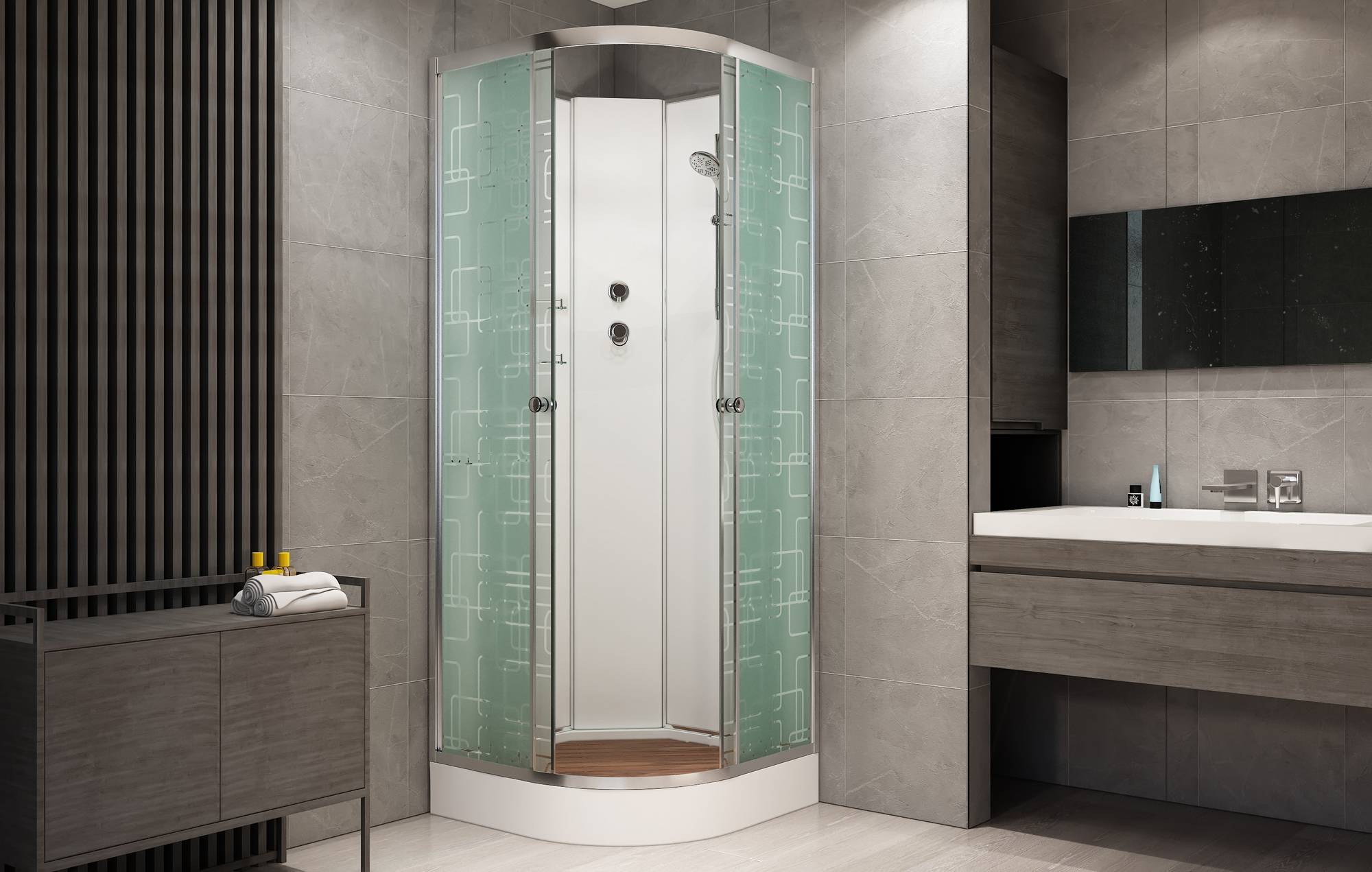 Душевая кабина Avacan 90x90 см EM1590NLED, хром/узор (безсиликоновая сборка)