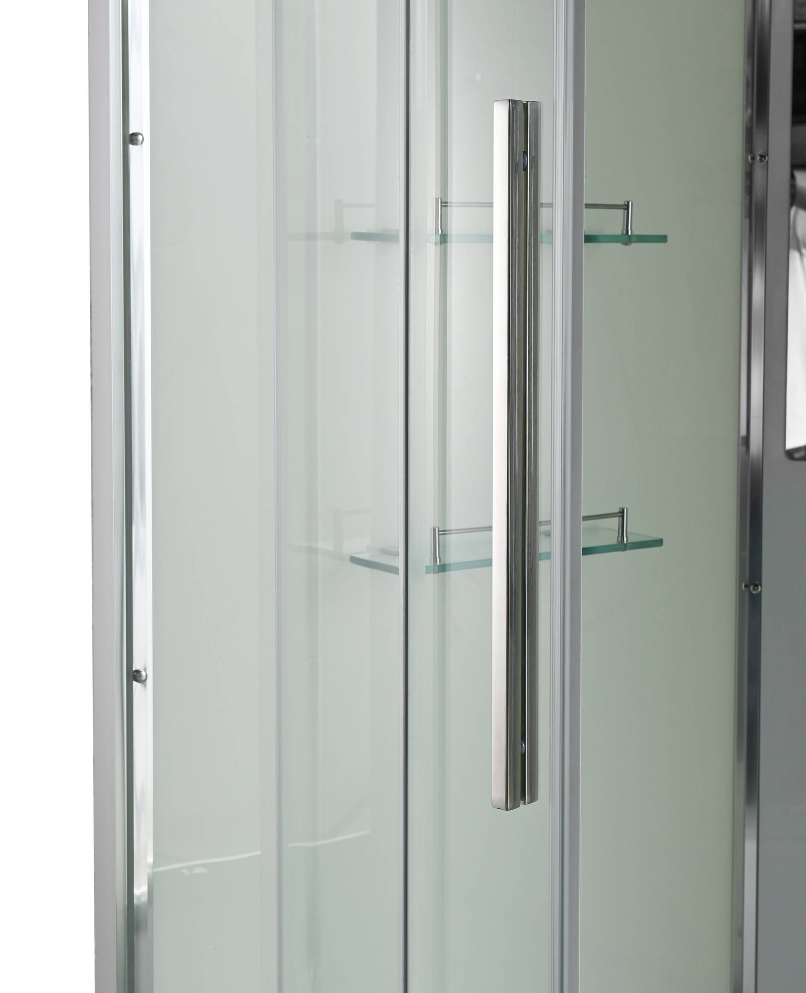 Стильная душевая кабина AvaCan сочетает в себе высокую функциональность, практичность и надежность. При изготовлении применяется безопасное закаленное стекло, надежно фиксируемое алюминиевым профилем. Профиль сделан из алюминия повышенной прочности. Сборка без силикона (увеличивает срок службы, защищает от протечек), внутренняя сборка (облегчает установку и ревизию; позволяет установить в ограниченном пространстве и обойтись без демонтажа других сантехнических приборов), смеситель резьбовой (без хомутов). Съемный экран поддона (позволяет осуществлять подключение и ревизию сифона).Двойные металлические ролики дверей (распределение нагрузки на два ролика, увеличивают срок службы). Душевая штанга(позволяет регулировать по высоте ручную лейку), ручная арома-лейка с витамином С (картридж в комплекте,есть возможность замены или удаления картриджа), полочки(из стекла, с ограничителем), сифон с гидрозатвором.