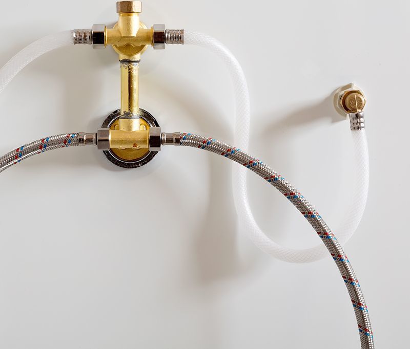 - латунный смеситель с керамическими картриджами и резьбовыми соединениями