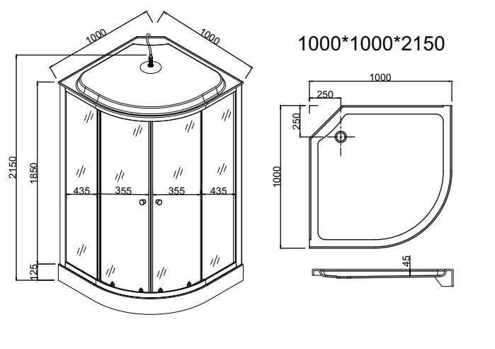 Душевая кабина EvaGold EG210009 100х100x215 см с низким поддоном и сифоном в комплекте, цвет задних стенок - чёрный.