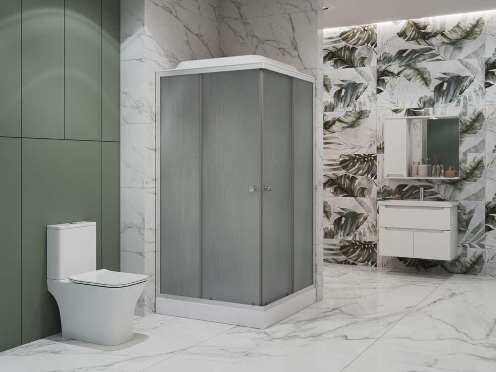 Душевая кабина EvaGold EG210017 900х900х2150 мм, стекло - матовое рифленое 4 мм, профиль - серебристый матовый, низкий поддон и сифон в комплекте, цвет задних стенок - белый.