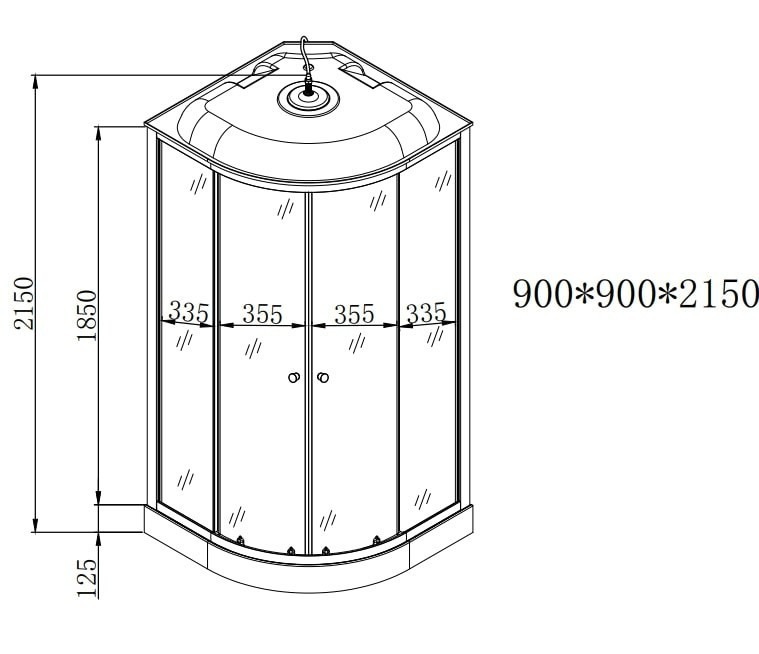 Душевая кабина EvaGold 90х90x215 см с низким поддоном и сифоном в комплекте, цвет задних стенок - чёрный.