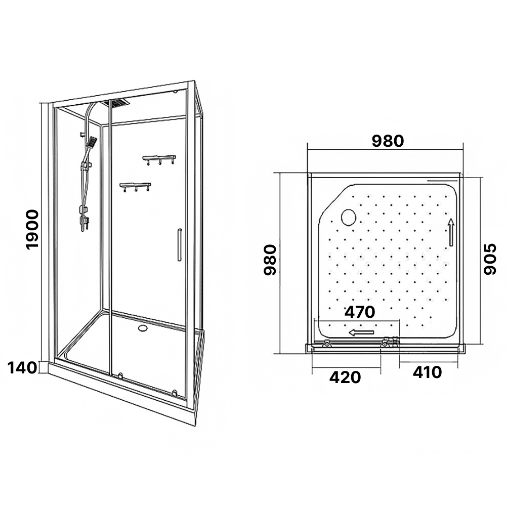 - Задняя стенка изготовлена из белого стекла, придающего кабинке современный и аккуратный вид. Прозрачные двери из закалённого стекла толщиной 4 мм обеспечивают безопасность и долговечность эксплуатации. Надёжный алюминиевый профиль чёрного цвета гармонично дополняет дизайн и гарантирует устойчивость конструкции.