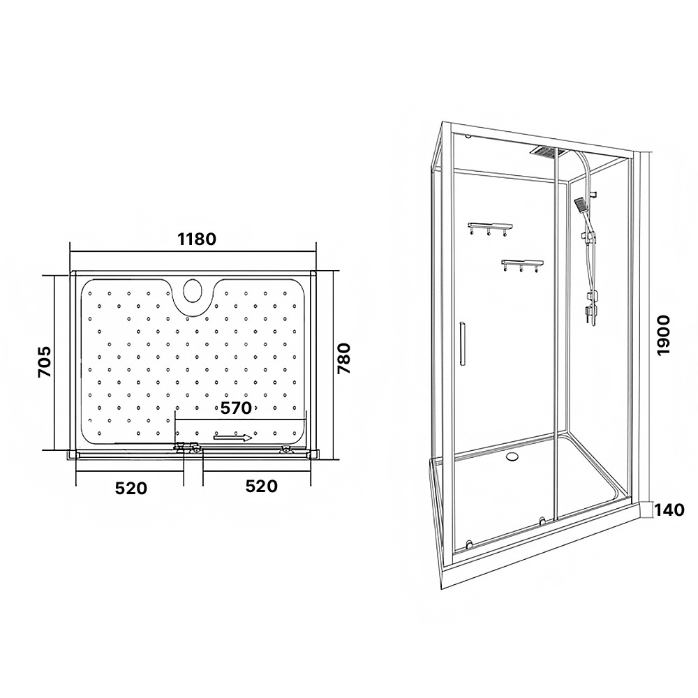 Душевая кабина Loranto CS-3010TM/W-120R с низким поддоном, правосторонняя, размер 1180х780х2040 мм, ширина входа 520 мм, профиль чёрный, стекло прозрачное 4 мм. Задние стенки стеклянные белые.