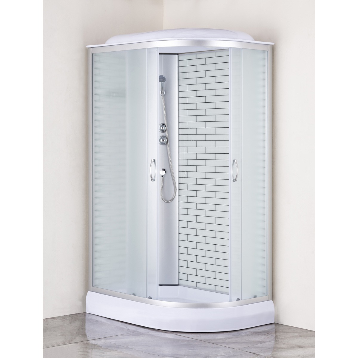 Душевая кабина Loranto CS-66120-13L FW 120 с низким поддоном, размер 1200х800х2150 мм, левосторонняя, белый кирпичный узор, профиль хром, стекло матовое 4 мм.