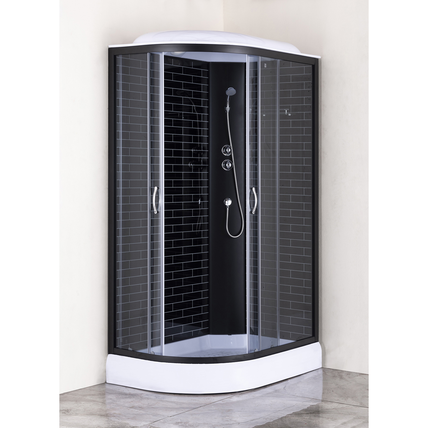 Душевая кабина Loranto CS-66120-13R GB 120 с низким поддоном, размер 1200х800х2150 мм, правосторонняя, чёрный кирпичный узор, профиль чёрный, стекло прозрачное.