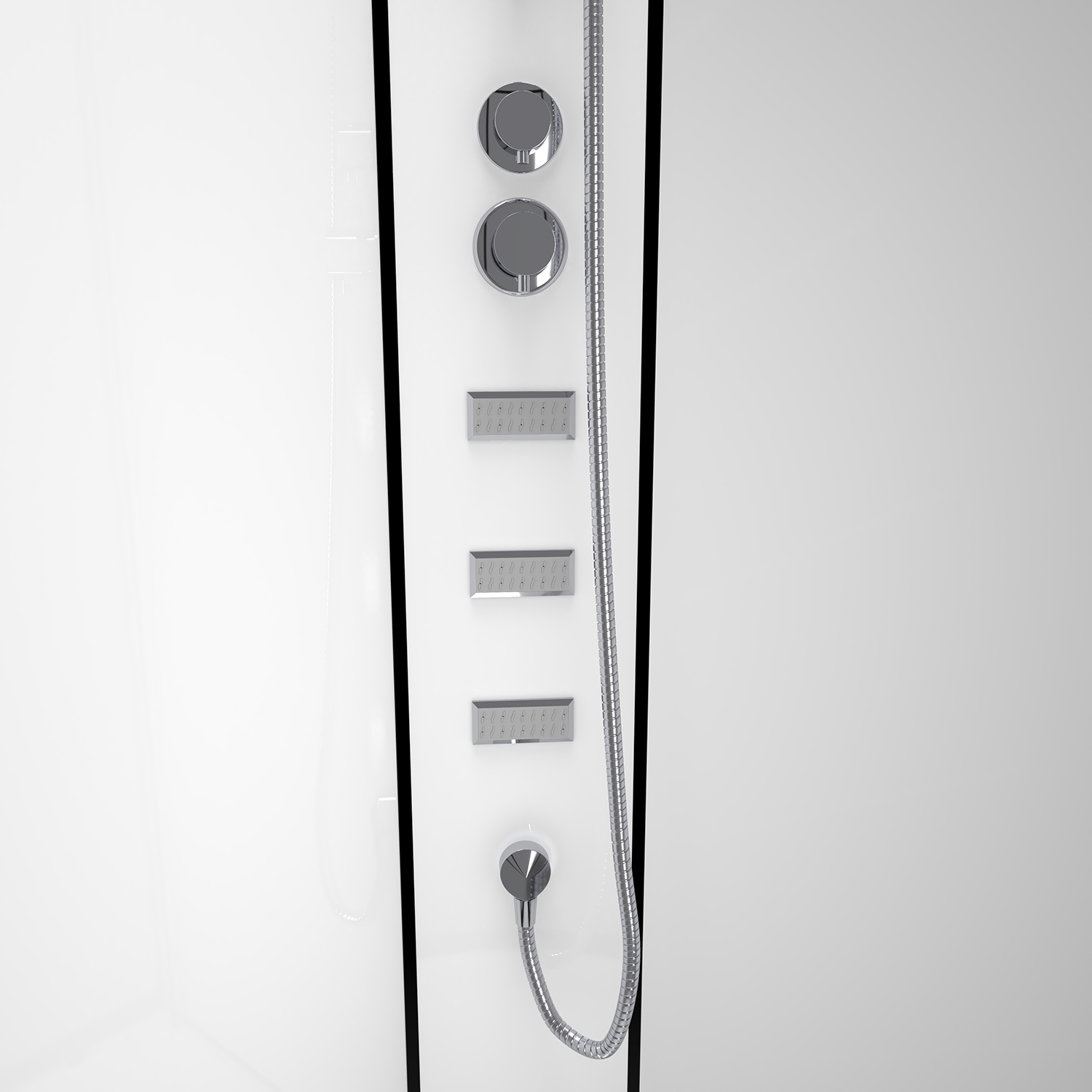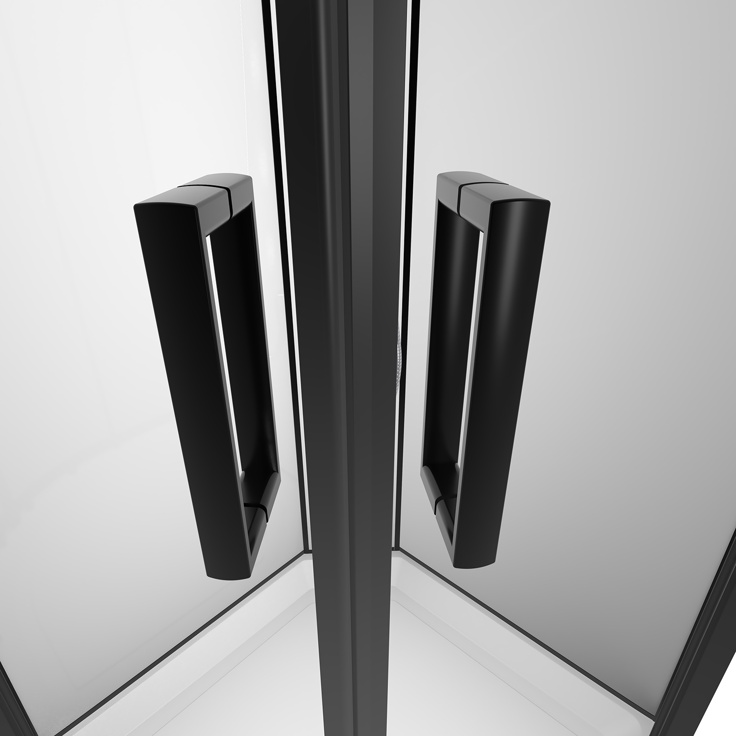 Душевая кабина Loranto Neo CS-21811-100 с низким поддоном, размер 1000х1000х2035 мм, профиль чёрный матовый, стекло прозрачное 5 мм. Задние стенки стеклянные белые. Ширина входа 540 мм.