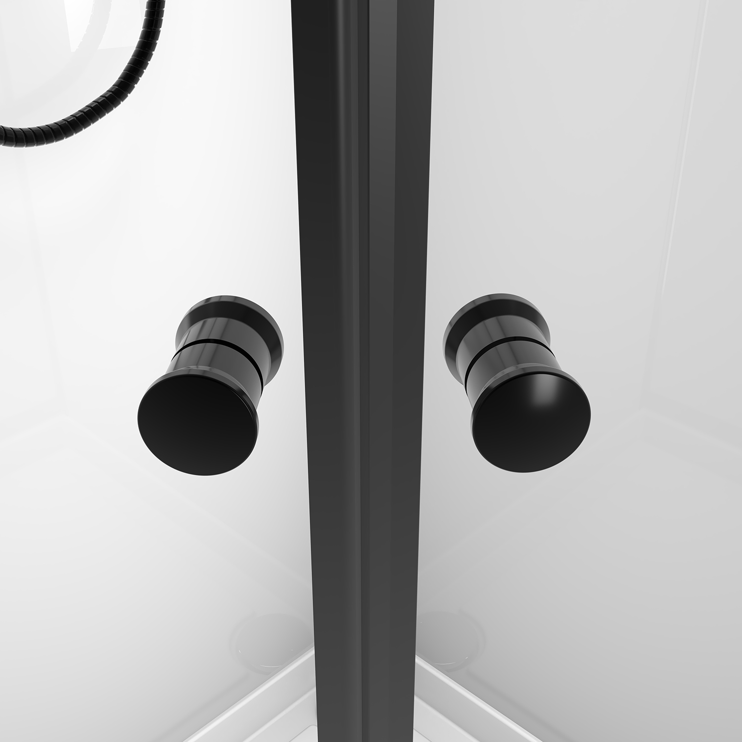 Душевая кабина Loranto Neo с низким поддоном, размер 900х900х2050 мм, профиль чёрный, стекло прозрачное 5 мм. Задние стенки стеклянные.