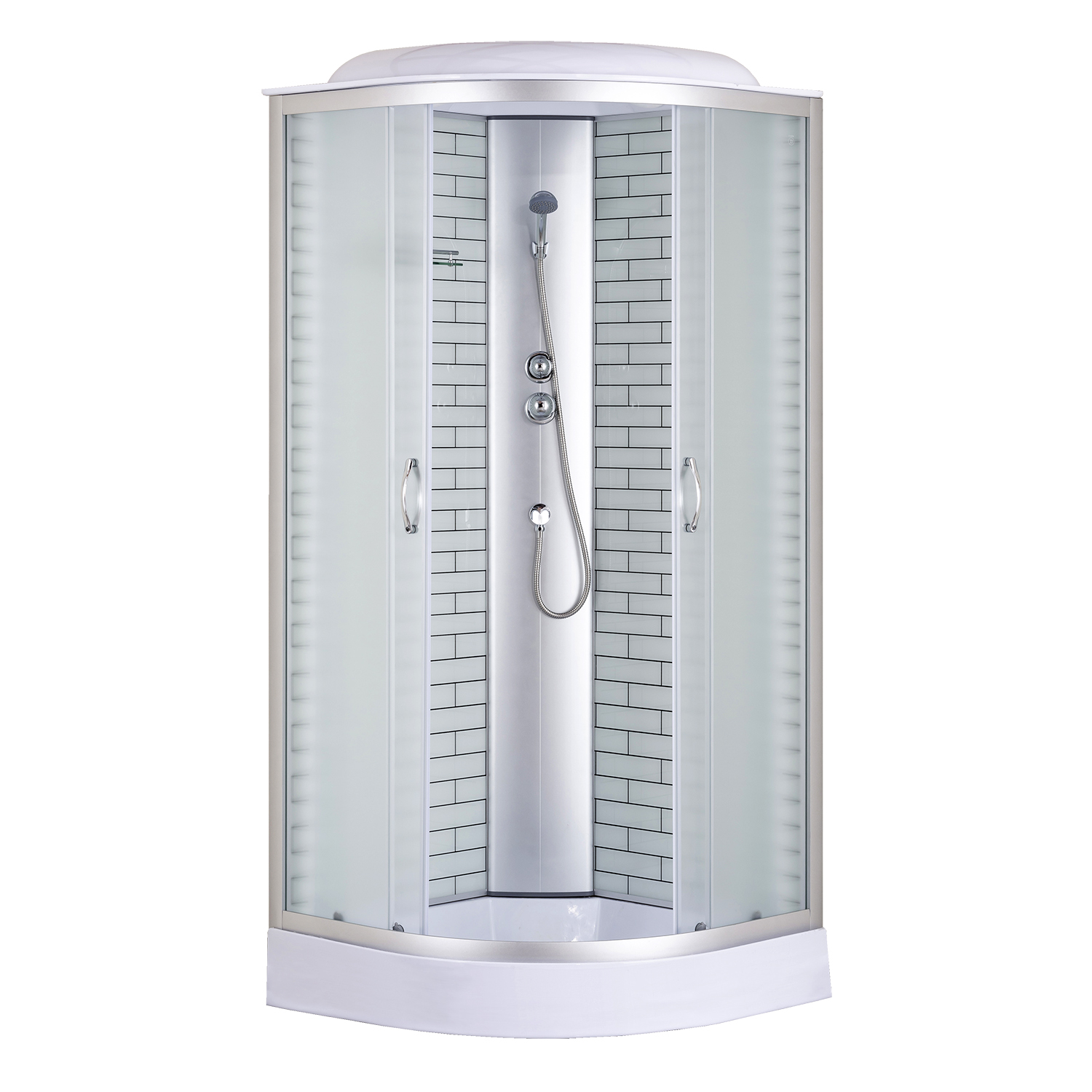 Душевая кабина Loranto 1000х1000х2150 мм, стекло - матовое 4 мм, профиль - хром, средний поддон 13 см, цвет задних стенок - белый с кирпичным узором.