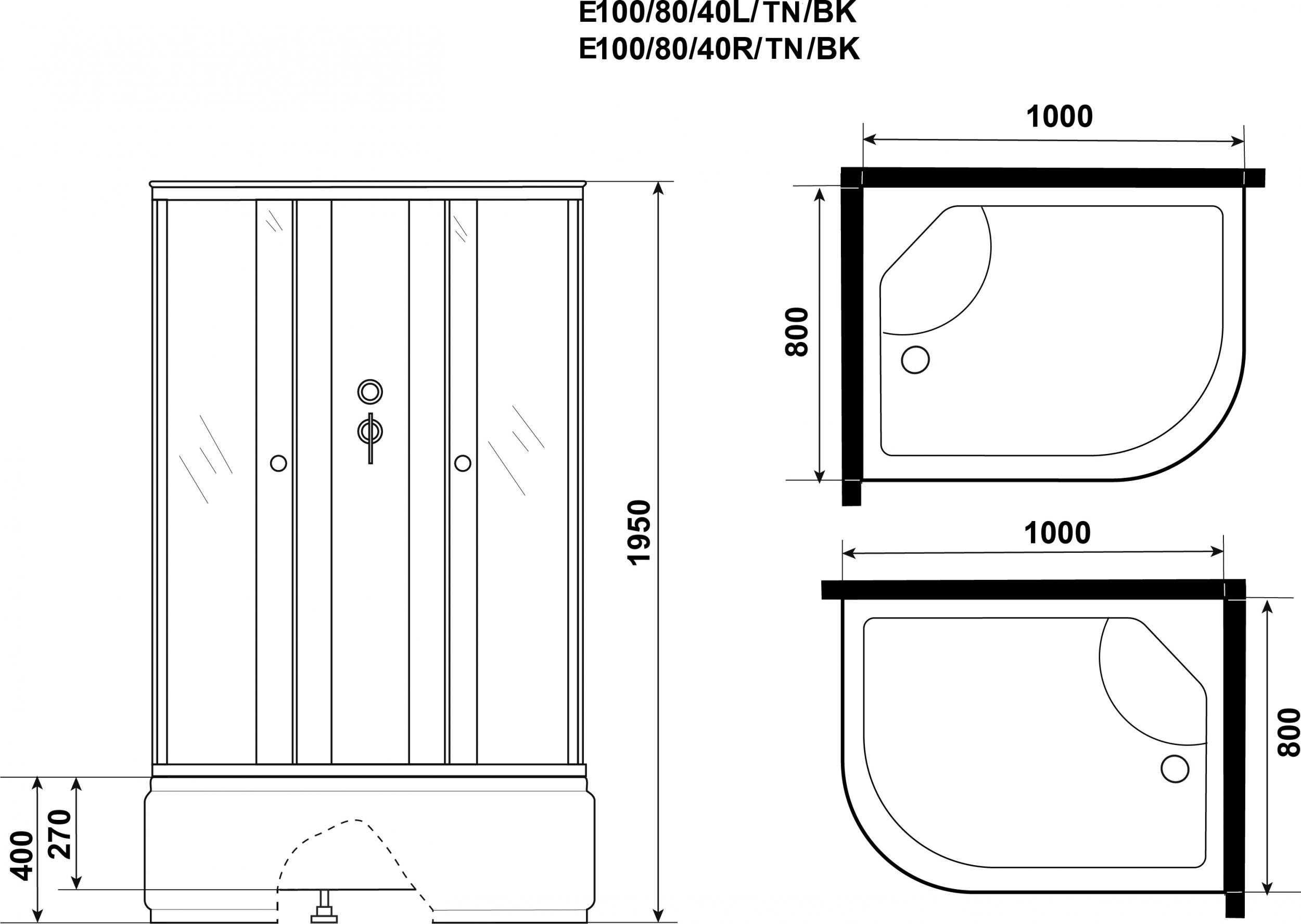 Душевая кабина Niagara 100x80 см E100/80/40L/TN/BK, хром/тонированное