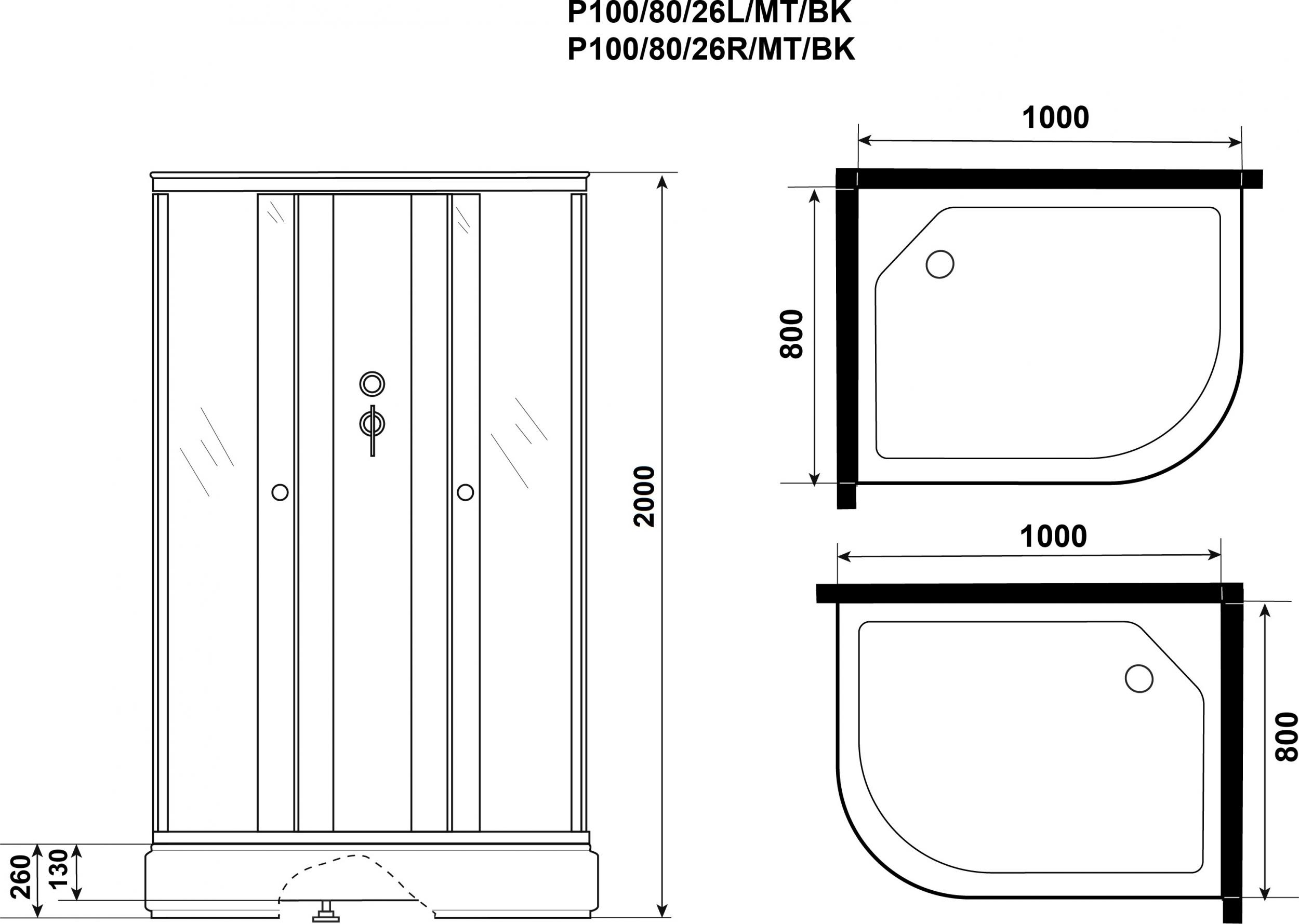 Характеристики Душевая кабина Niagara (P100/80/26R/MT/BK)