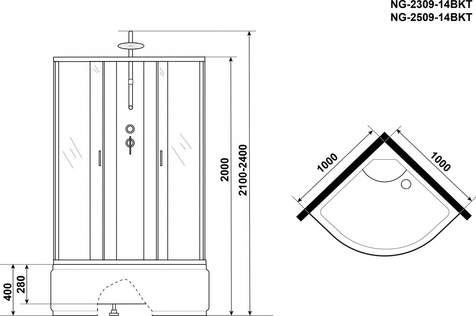 - Бессиликоновая душевая кабина Niagara NG 2509-14BKT Без крыши с тропическим душем