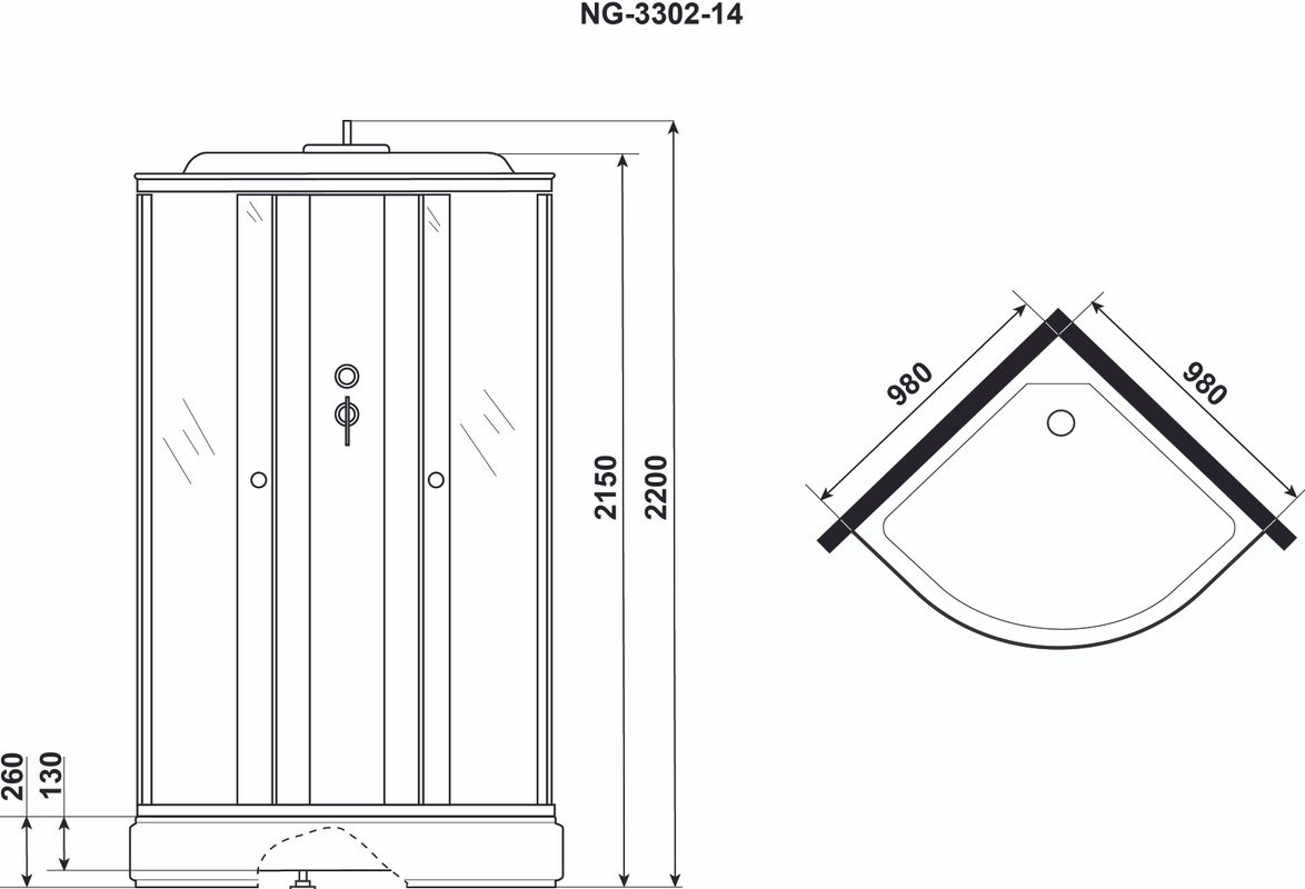 Душевая кабина Niagara Classic NG-3302-14 со средним поддоном, размер 980x980x2200 мм, цвет задней стенки белый. Ширина входа 470 мм. Средний поддон и сифон в комплекте.