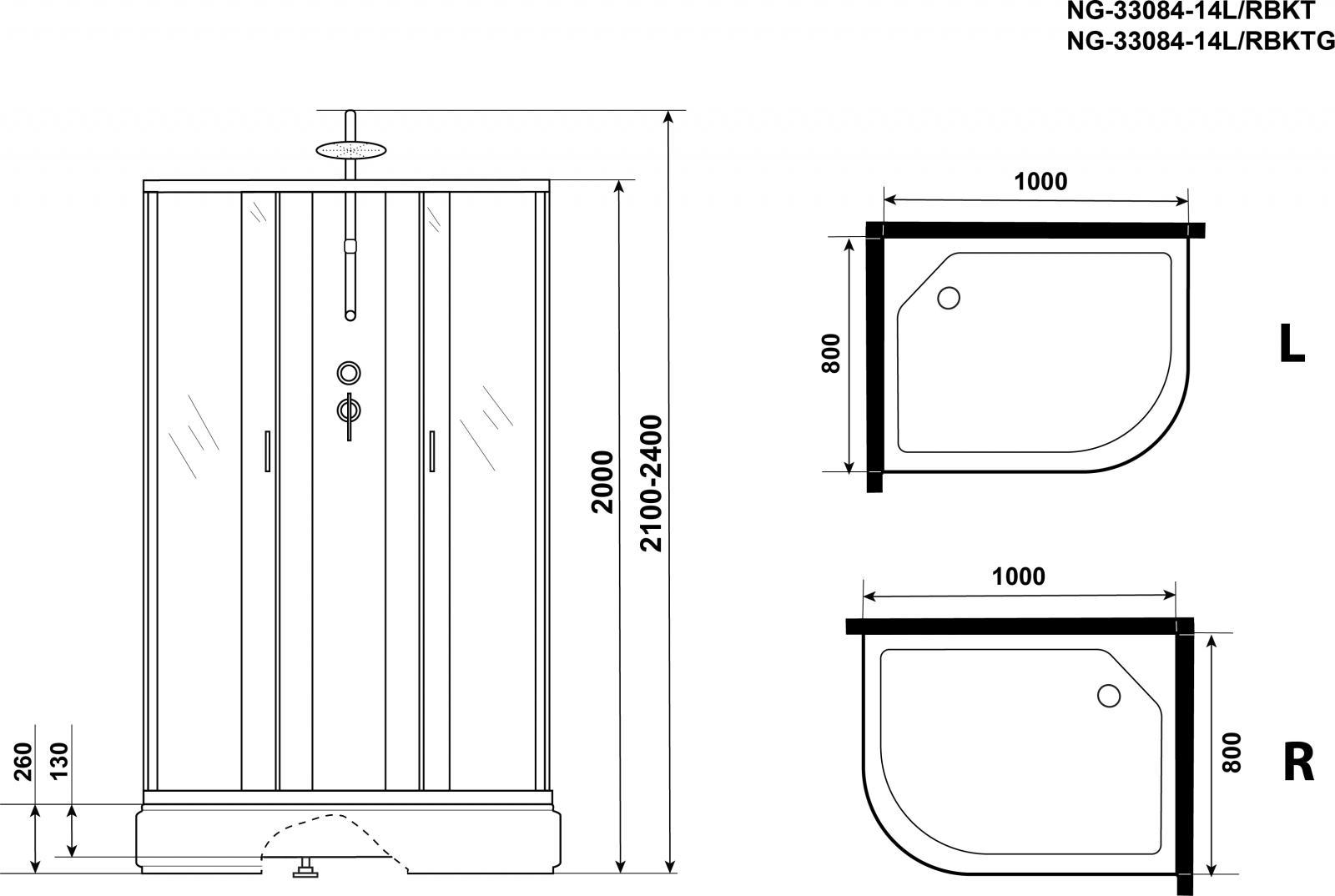 - Душевая кабина Niagara NG 33084-14RBKT Без крыши с тропическим душем