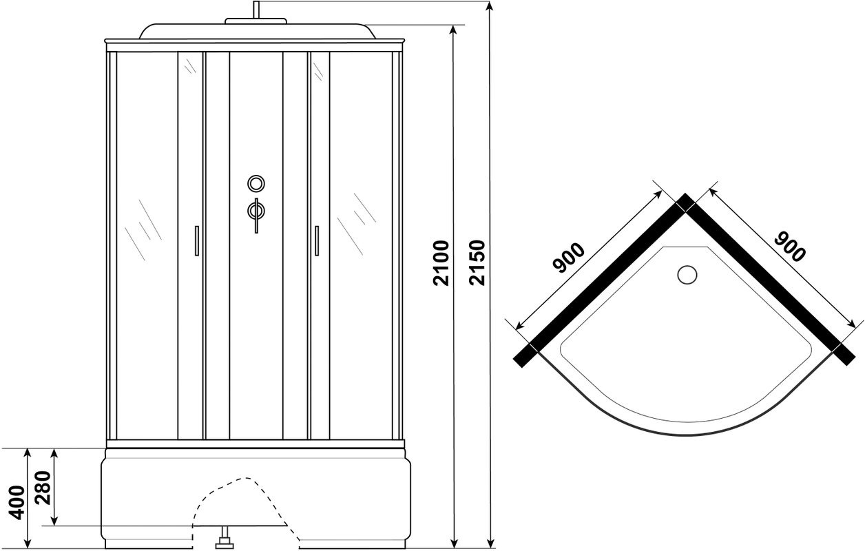 Душевая кабина Niagara Classic NG-6508-14 с высоким поддоном, размер 900x900x2150 мм, цвет задней стенки чёрный. Ширина входа 500 мм. Высокий поддон и сифон в комплекте.